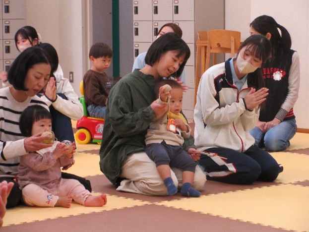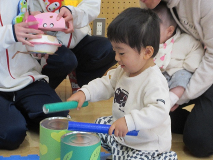 11月28日(金)、第14回親子いきいき広場を開催しました。今回は『音楽会~いろいろな音で楽しもう~』をテーマに、親子や学生と一緒にいろいろな遊びを体験してもらいました。