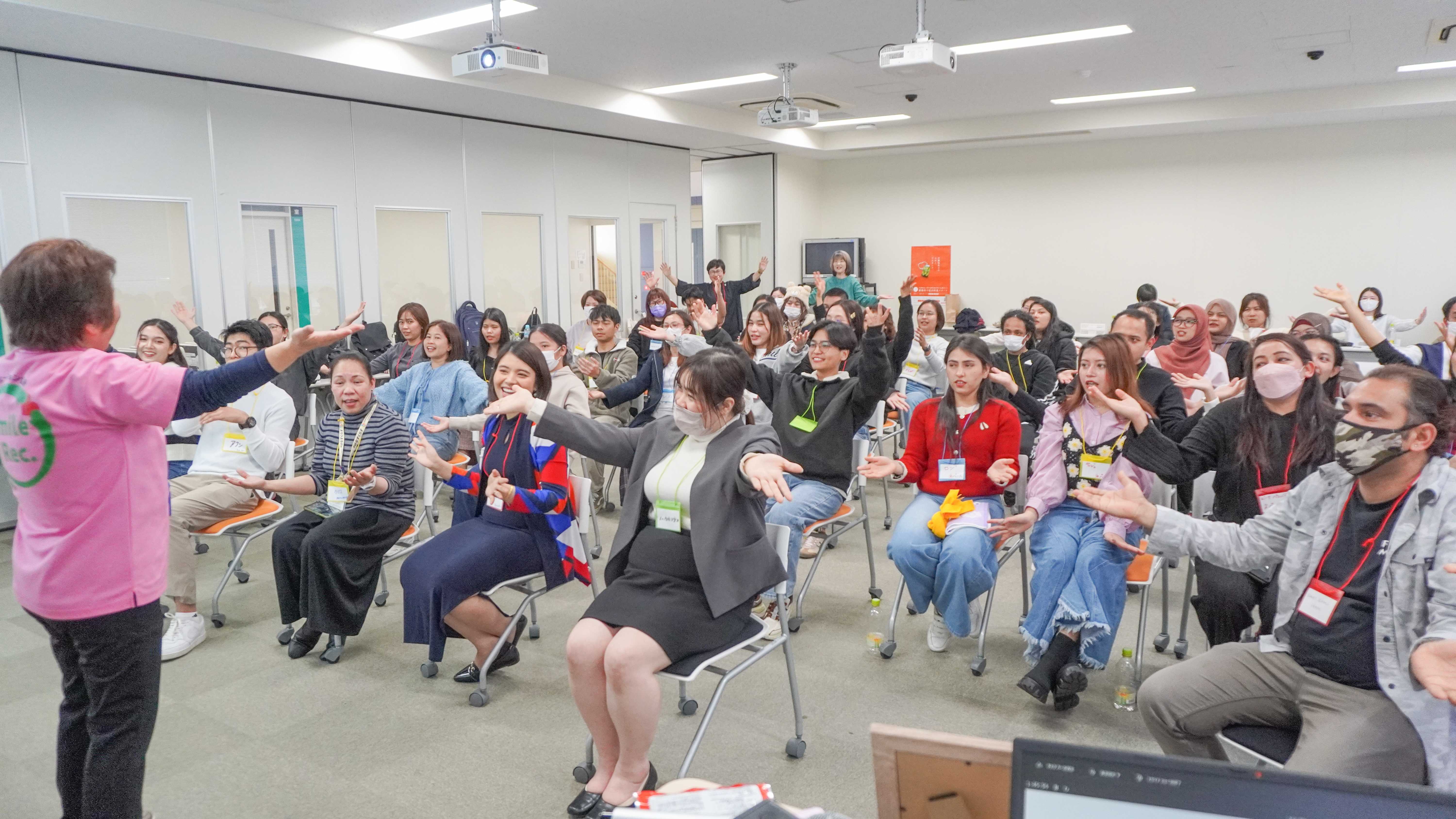 交流会の後半では、武雄市レクリエーション協会の森恵美先生によるレクリエーション活動も行われ、参加者同士の交流がさらに深まり、会場は笑顔に包まれました。