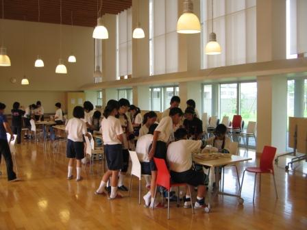 9月12日(木)、小城中学校での福祉体験授業に生活福祉学科の教員が参加し、高齢者疑似体験を行いました。1年生約170名が高齢者体験キッドを装着し、体験コーナーでお箸を使って豆をつまんだり、階段を上ったり、新聞を読んだりして高齢者の日常を体験しました。