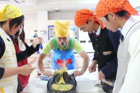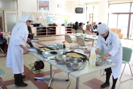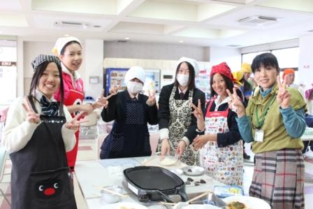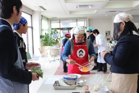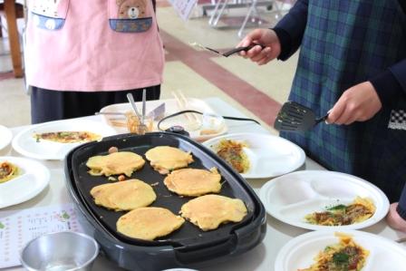 ホットプレートを使って、体の負担が少ない調理方法を学びました。在学生に高校生、介護現場で働く人、タイからの留学生が参加しました。一緒に作業することでコミュニケーションをとることができ、料理が出来上がった時は満足感や達成感を共有することができました。