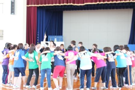 この交流会の目的は、1年生と2年生の交流やリフレッシュが大きな目的ですが、これだけではなく、先生方とのコミュニケーションや日頃の運動不足の解消なども目的のひとつです。