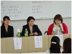 同日に、食物栄養学科卒業生3名を迎え、先輩栄養士からの就活応援メッセージを頂きました。