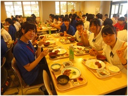講座のあとは、学食タイム。今日は鶏のからあげでーす!