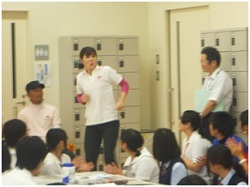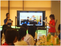 その後、学生が作ったパワーポイントを元に、学科紹介がありました。楽器を使ってのパネルシアターもかなりの見ごたえです。