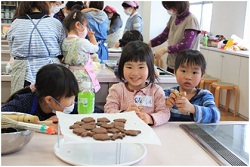 19組の親子(子どもを含めて53名)に参加していただきました。「親子で一緒に出来る活動でよかったです」、「託児をして頂いてゆっくりクッキー作りやレクリエーションが楽しめました」といったご意見をいただきました。