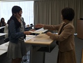 「他の皆さんも、今度は卒業式で表彰されるように頑張ってくださいね!」との激励の言葉をもらった2年生たち。1年生のお手本となれるよう、悔いのない短大生活を送ってくださいね。