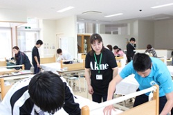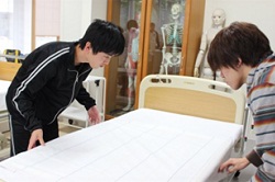 1年生は、生活支援技術Bで、ベッドッメイキングの技術を特訓中です!