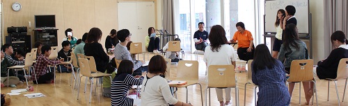 この日の授業の後半では、手を使ったレクリエーションを教わりました。森恵美先生のエネルギッシュで明るい授業で、学生の表情もどんどん豊かに!