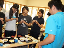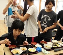 普通食とソフト食の試食もさせていただきました。初めてソフト食を知った学生は、その味と食感に興味津津。想像以上のおいしさに驚くと同時に、栄養士や調理師の方々の専門性を感じていました。