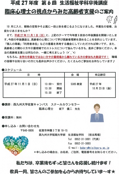 平成27年度 第6回 生活福祉学科卒後講座のご案内