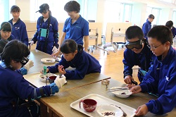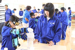 | 平成27年9月10日(木)、小城中学校1年生の総合的な学習の時間「福祉体験学習」が行われ、生活福祉学科と専攻科保育福祉専攻の教員が、「高齢者疑似体験の学習」を担当しました。 |