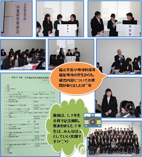平成28年1月29日(金)1・2限、3月に卒業を控えた2年生の卒業研究発表会を行いました。