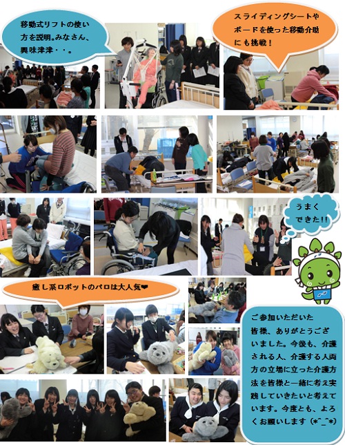 この日は、「持ち上げない移動・移乗の仕方」と「最新式の便利な介護用品アラカルト」と題して授業を行いました。