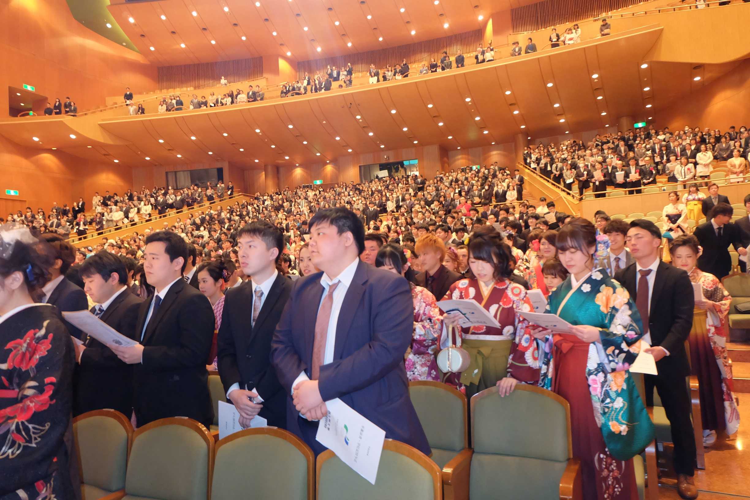 平成31年3月19日(火)佐賀市文化会館にて平成30年度西九州大学・西九州大学短期大学部 卒業証書・学位記授与式が挙行されました。 天候にも恵まれ、卒業生一同の晴れやかな姿、笑顔であふれる輝かしい門出の式となりました。 大学・大学院より378名、短期大学部より153名、エルダーカレッジより61名の方が卒業及び修了いたしました。 皆様の今後のご活躍とご健勝を教職員一同、心より祈念いたしております。 ご卒業おめでとうございます。