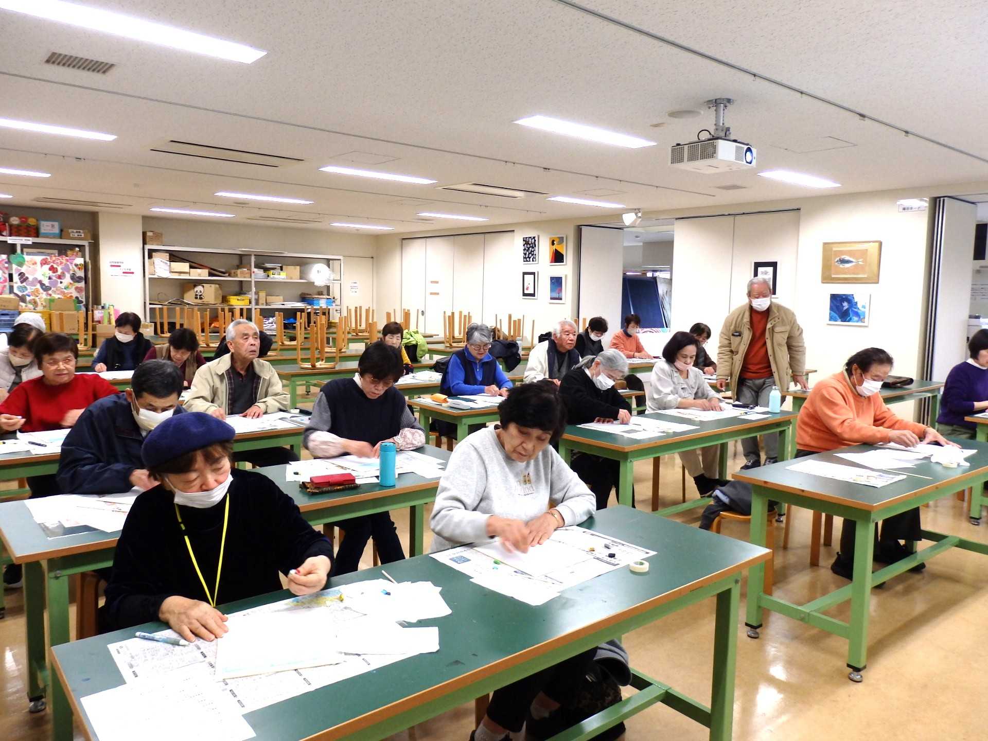 認知症を予防するためには右脳を使うことも効果的とのことで、楽しい先生のお話を真剣に聞いてありました