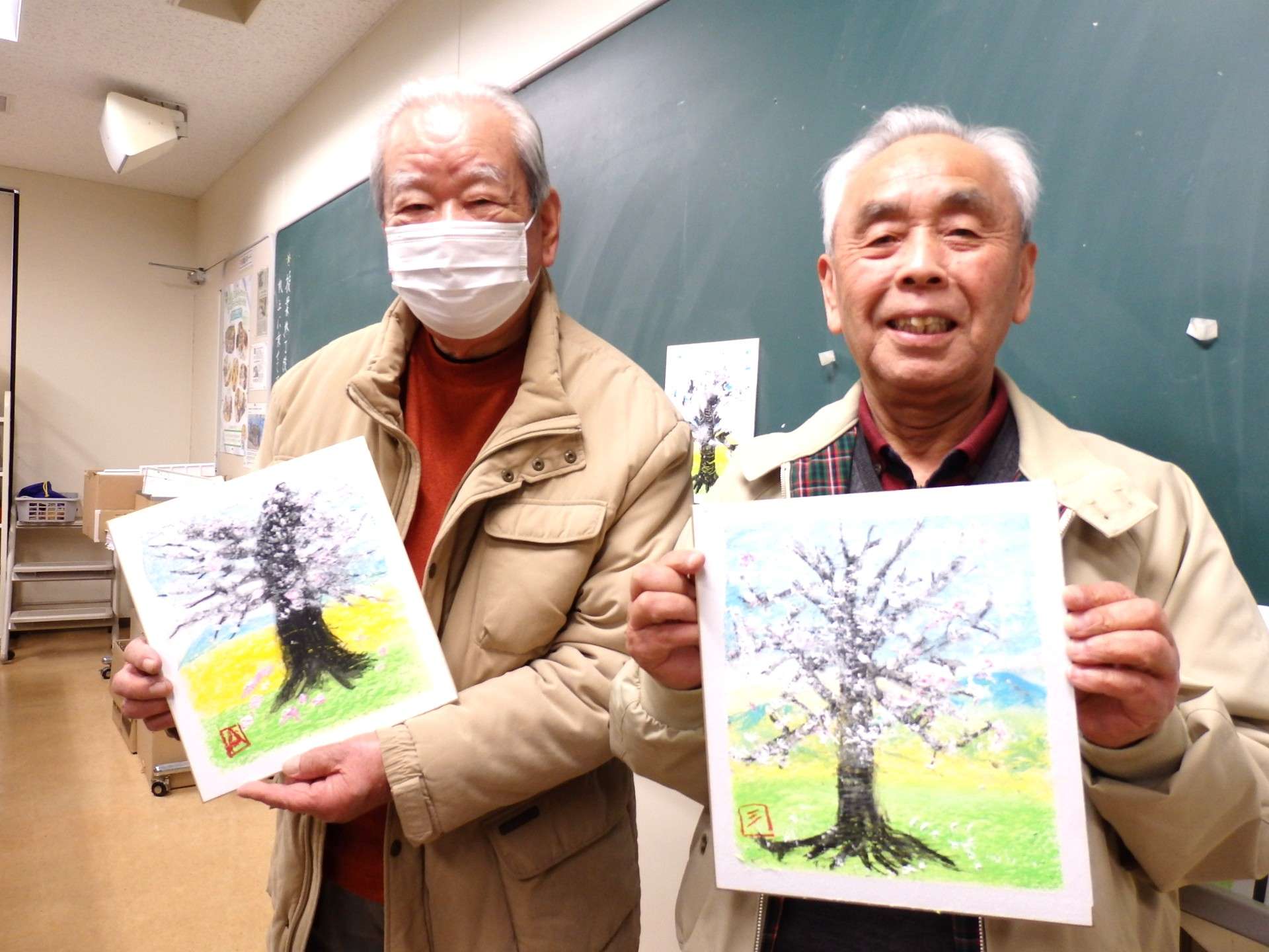 出来上がった色紙を前に飾って・・・