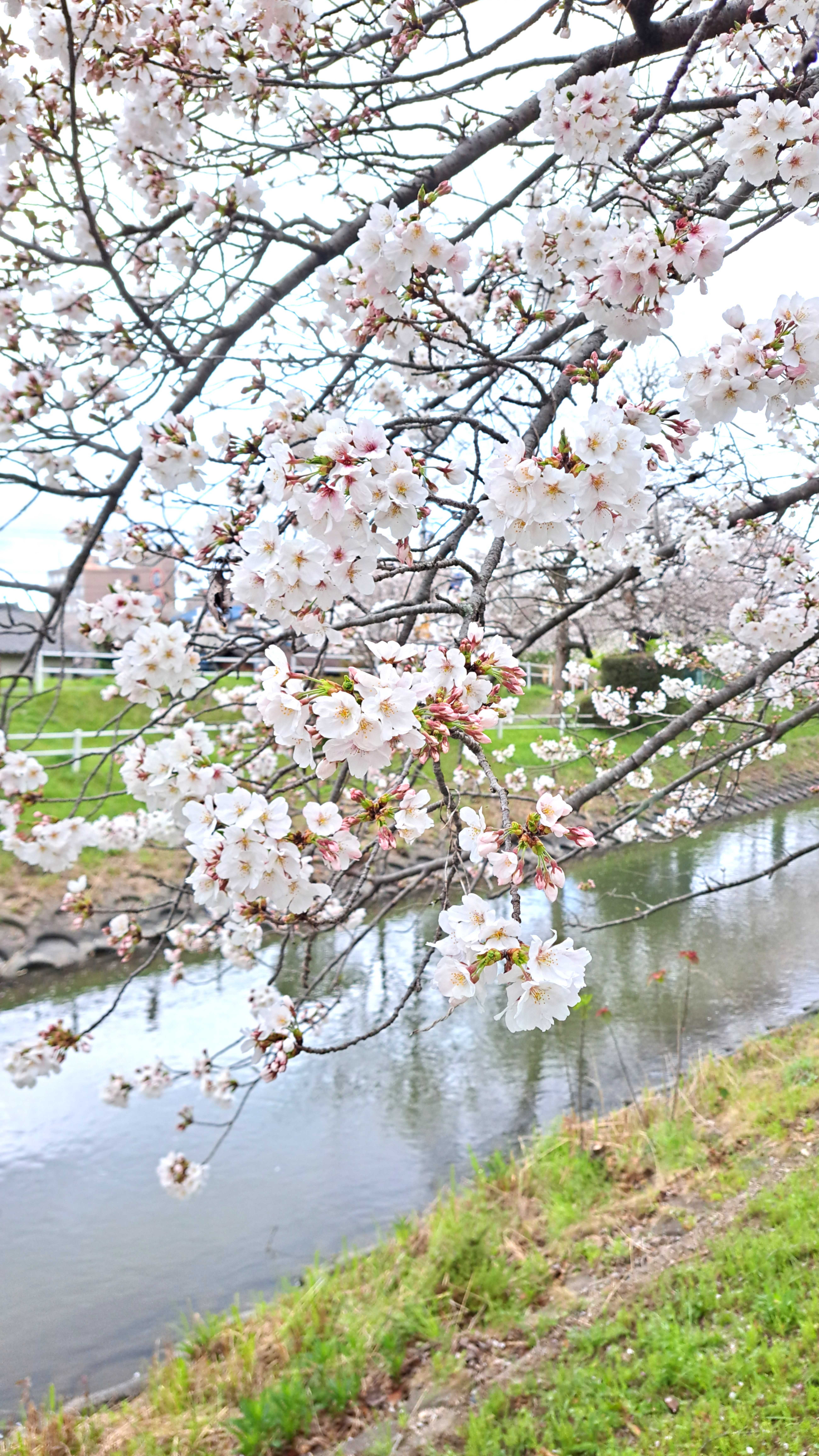 本校の正門やすぐ近くの川沿いにも、桜が咲き誇っていました