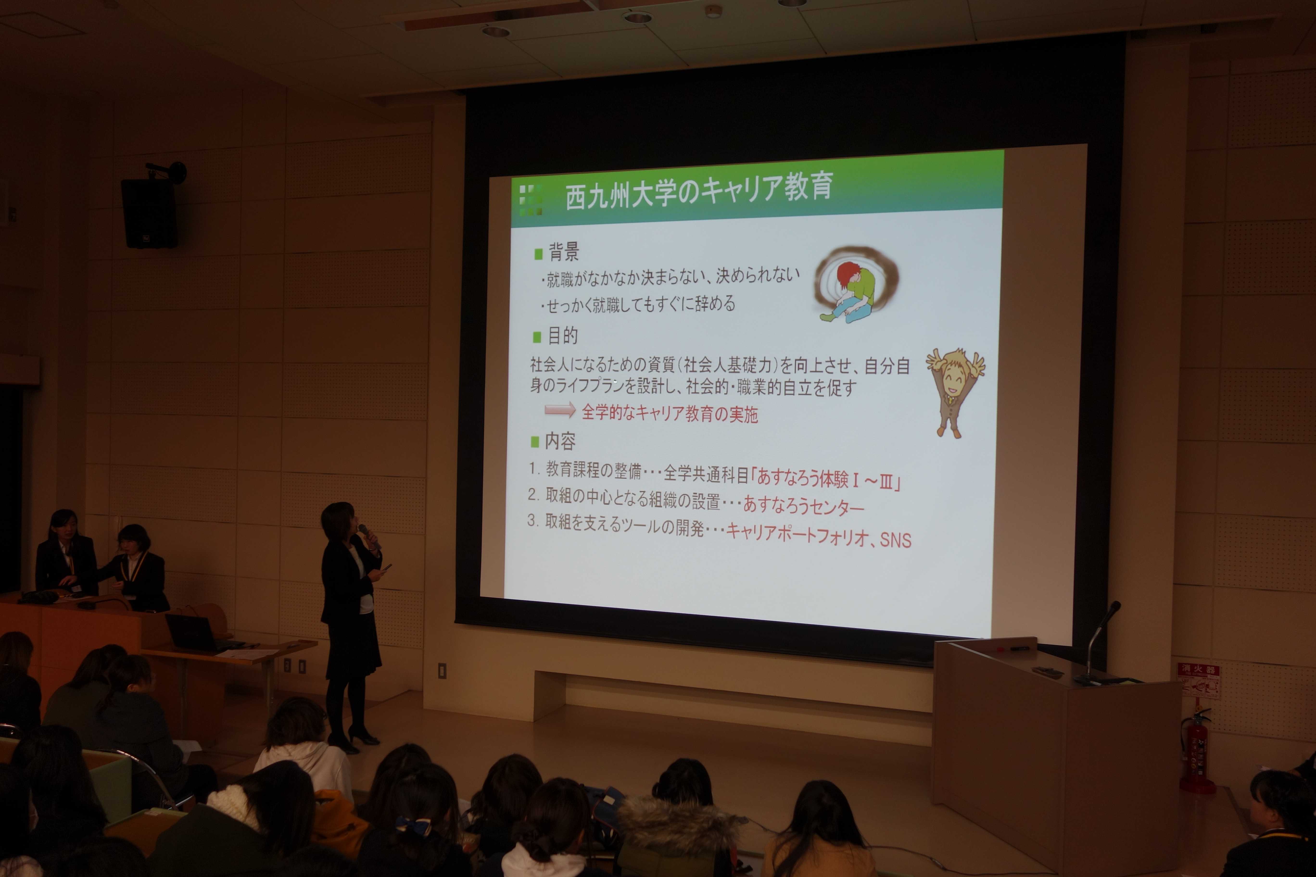 心理カウンセリング学科の代表者は2名で、二人とも図や表、写真を入れた見やすいスライドを