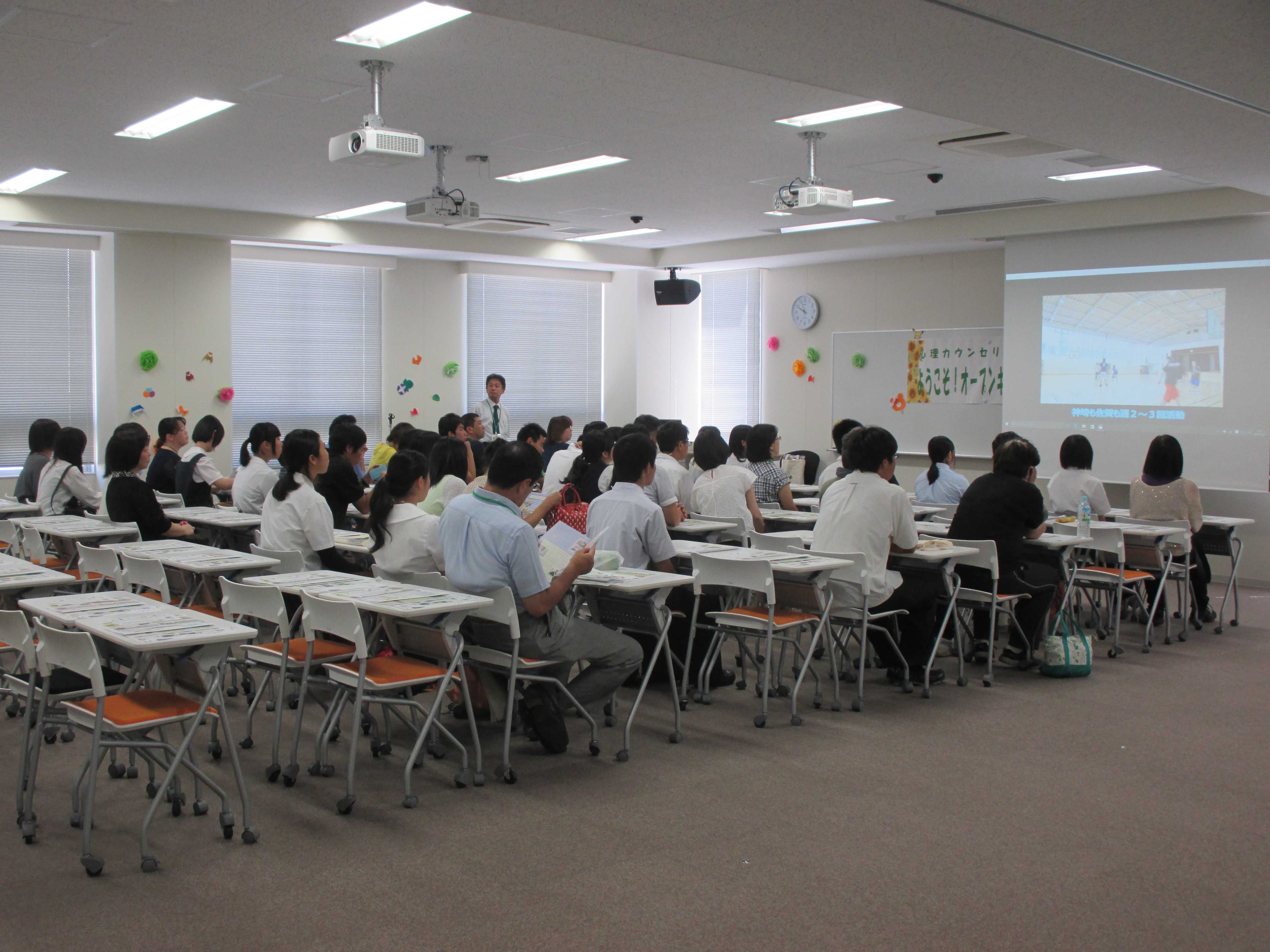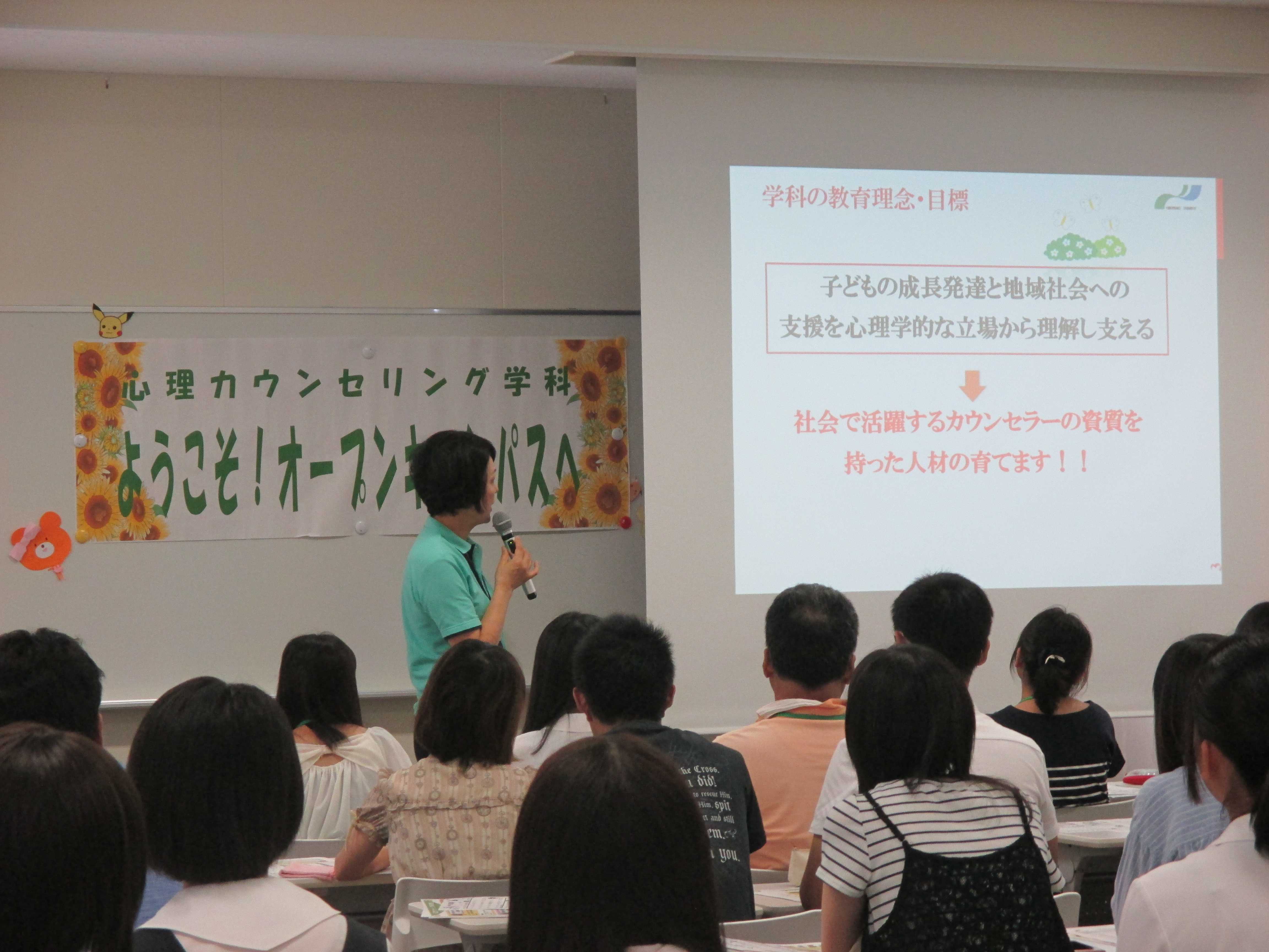 この日も朝から日差しが強く、暑い日だったにも関わらず、心理カウンセリング学科には、高校生28名、同伴者32名、計60名の方がお越しくださいました