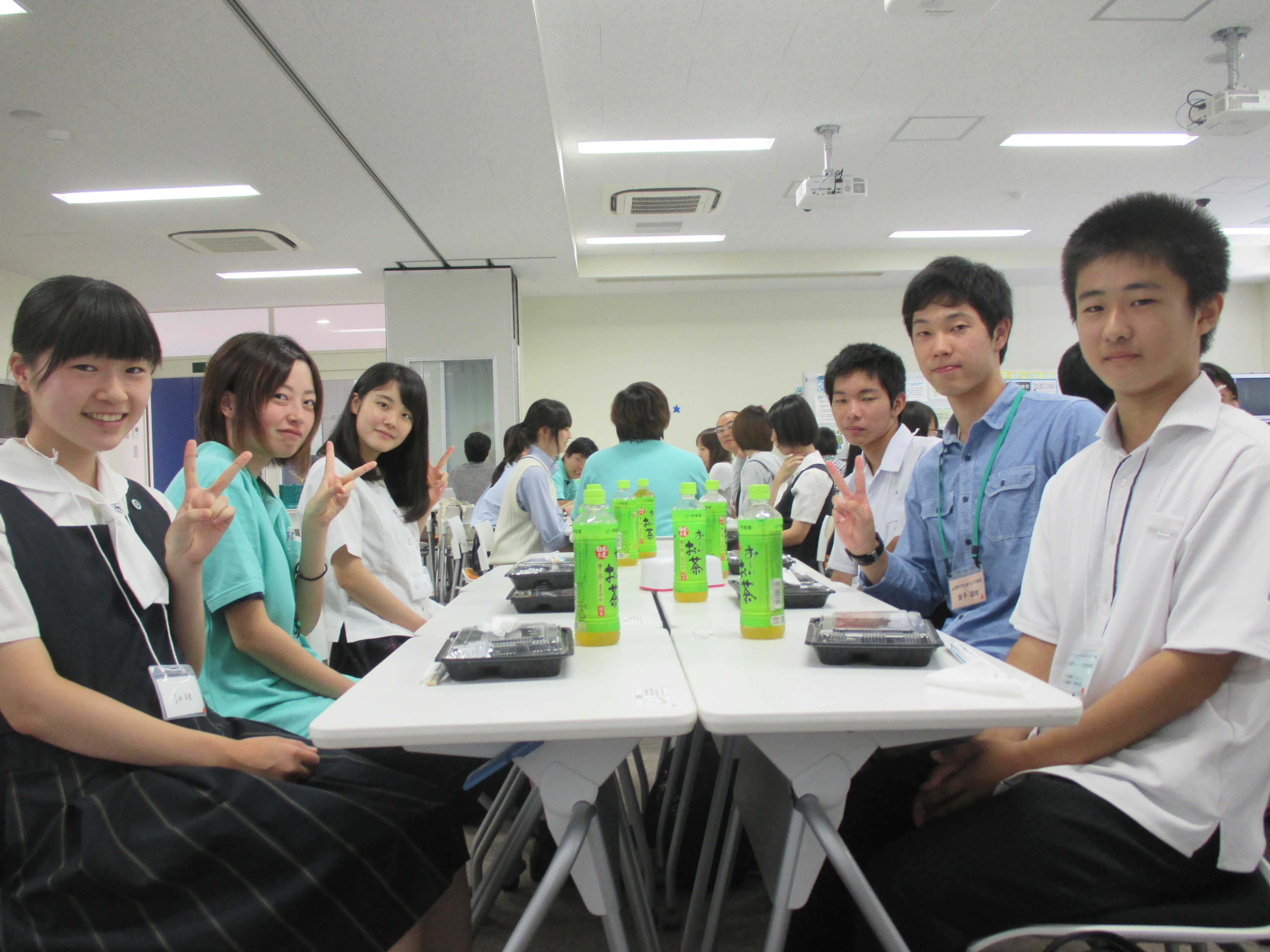 高校生と大学生のボランティアスタッフが和気あいあいと話をしながら、楽しくお昼ご飯を食べました