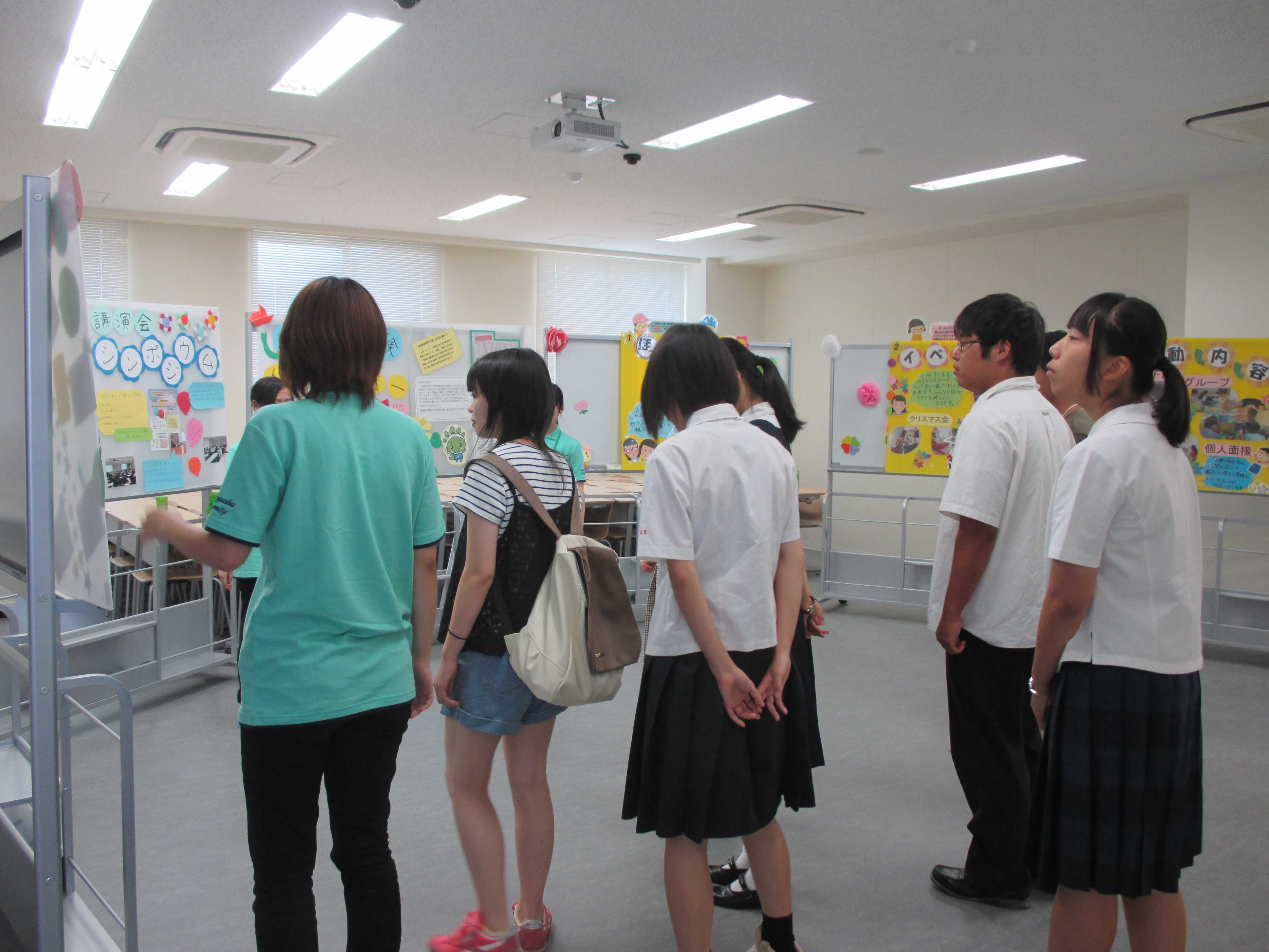 昼食後、高校生は大学生ボランティアと一緒にキャンパスツアーです