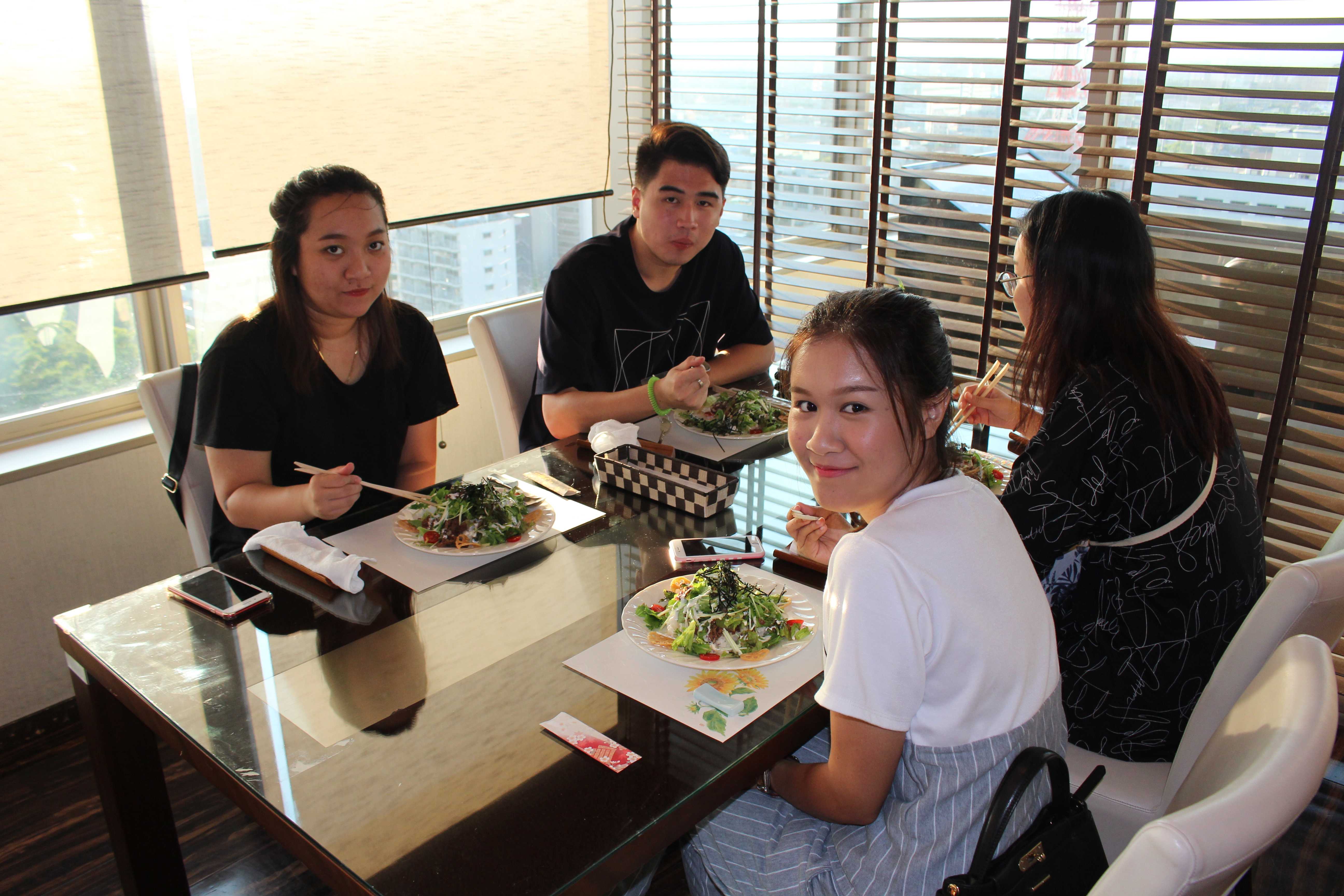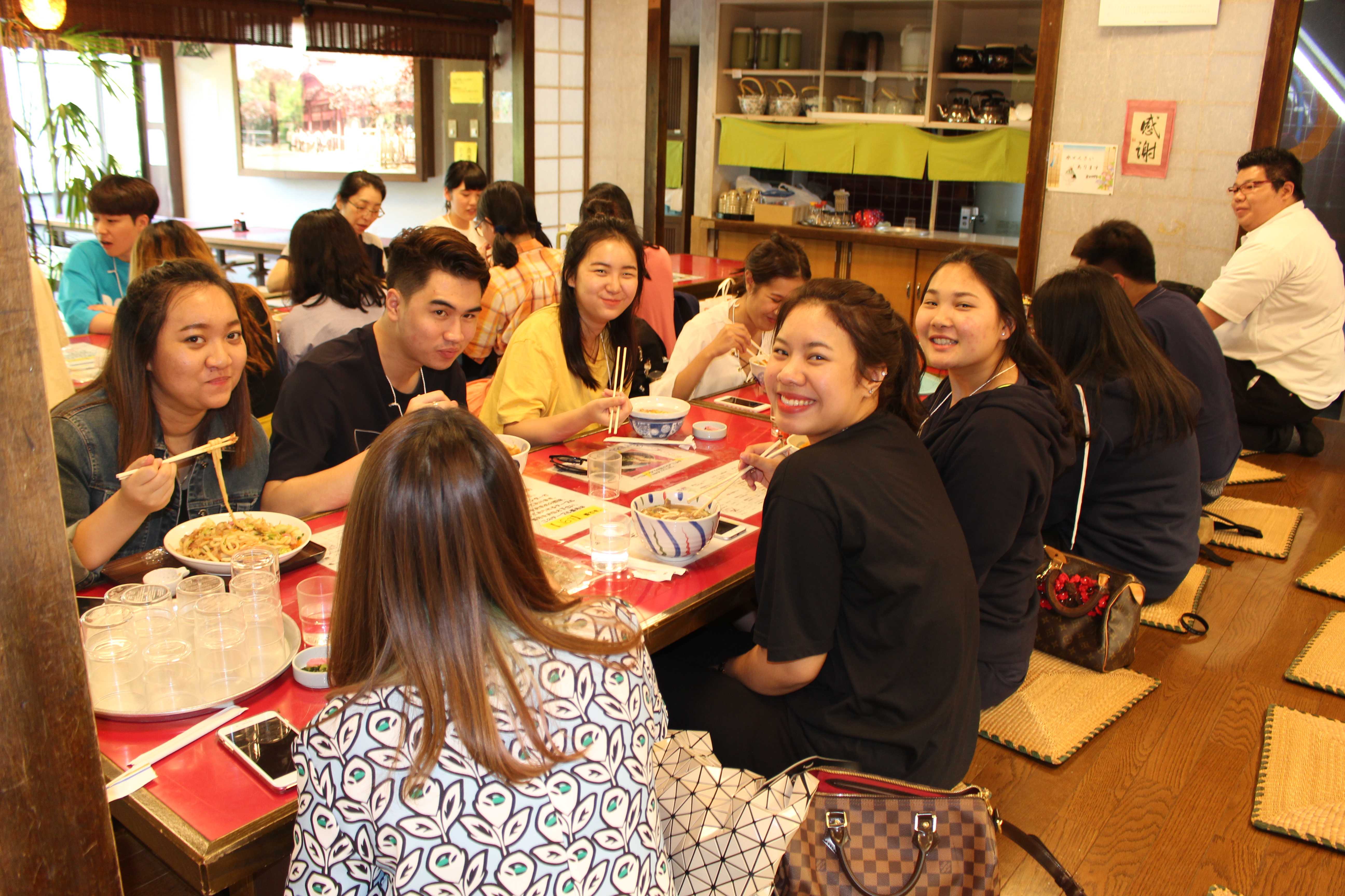 留学生の皆さんは、かつ丼やそばなど、日本食を堪能していました