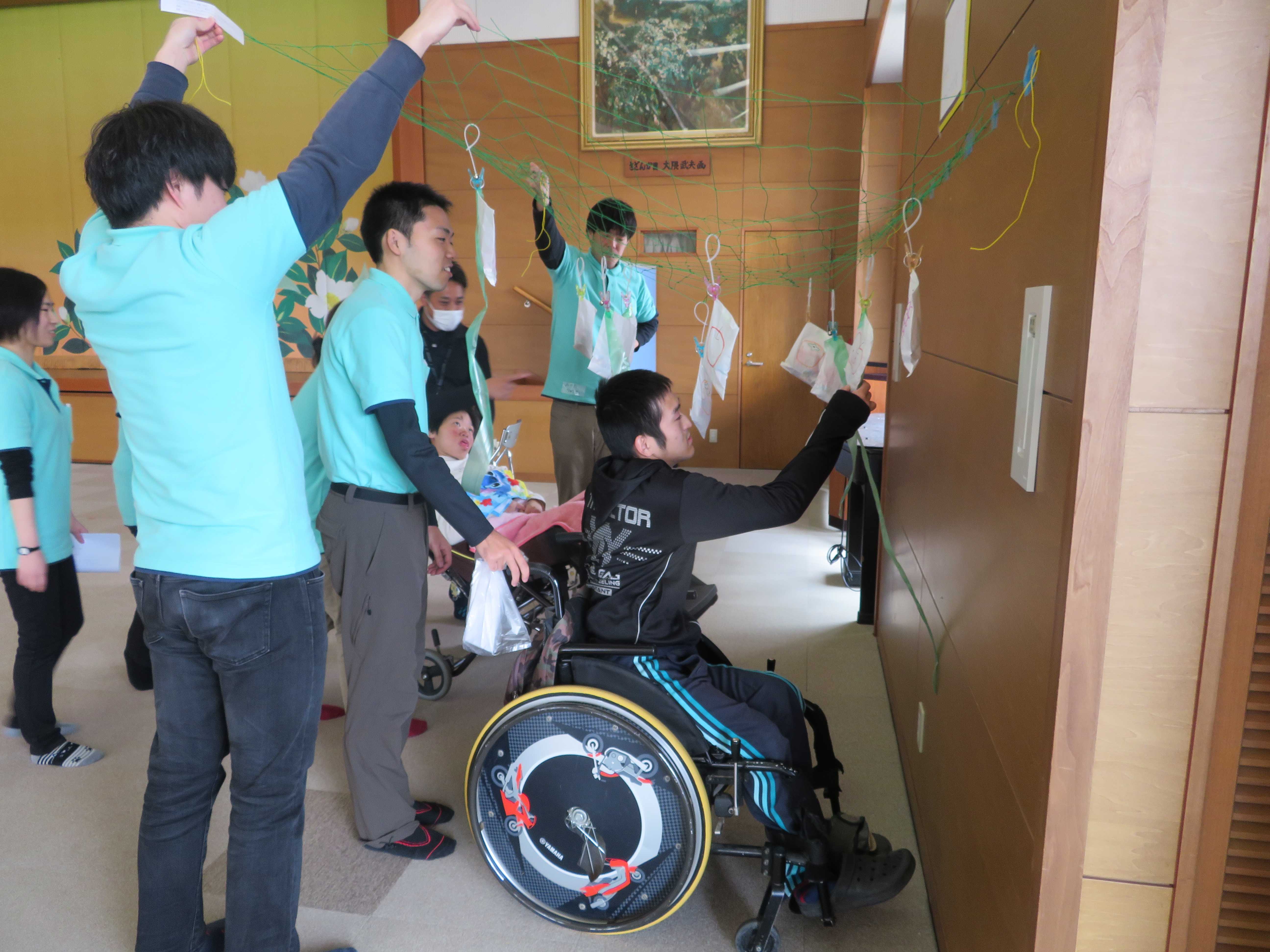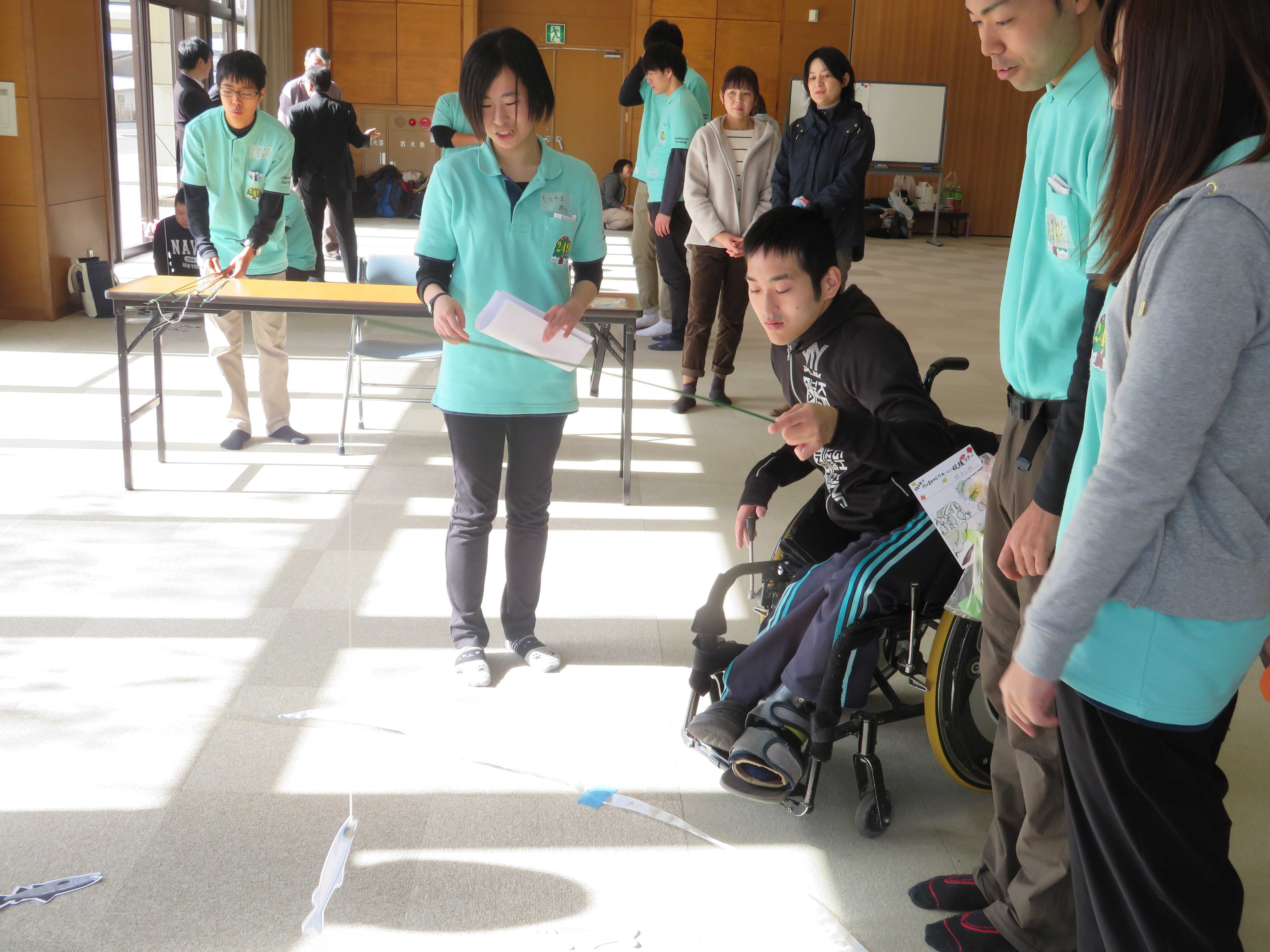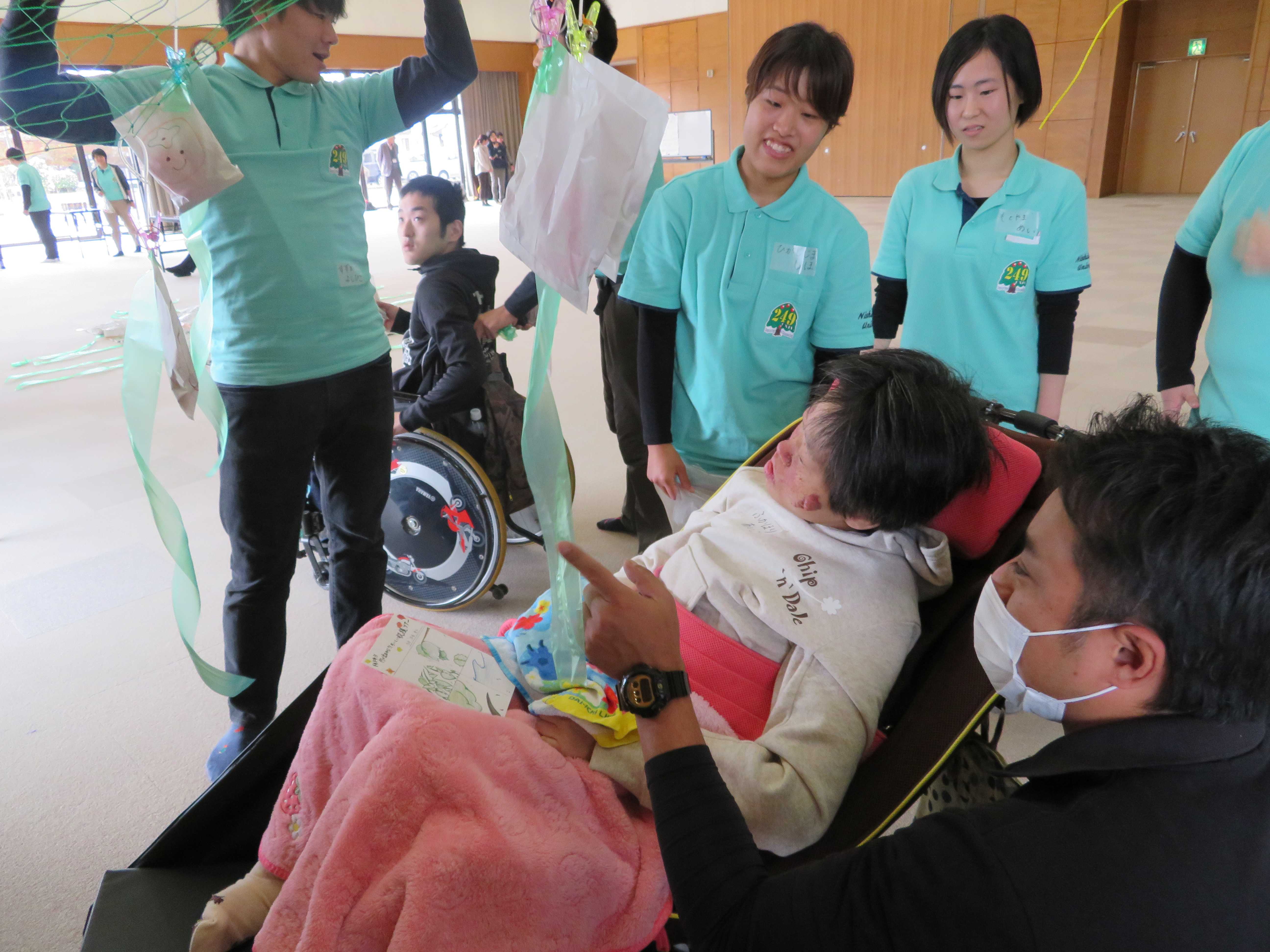 この交流活動は「あすなろう体験Ⅲ」の授業の一環で行っています。「かえでの会」(主として神埼市に在住の障害児・者及びその家族で構成されている当事者団体)と土日の余暇活動を年4回計画しており、今回は第3回の実践活動でした