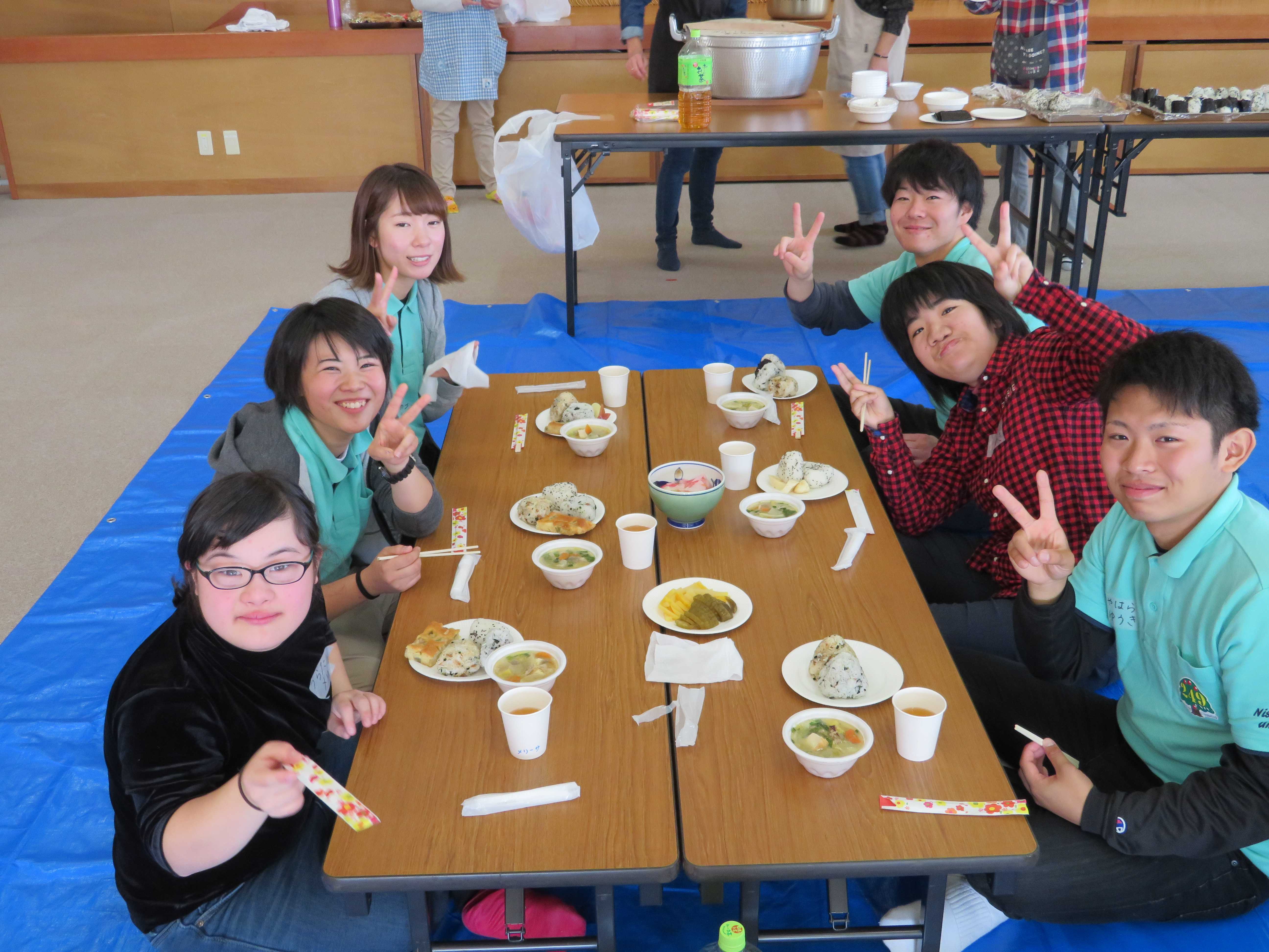 お昼ごはんは、保護者の方が作って下さった、おにぎりと豚汁です。寒くなってきたので、あたたかい豚汁が体にしみてとても美味しかったです
