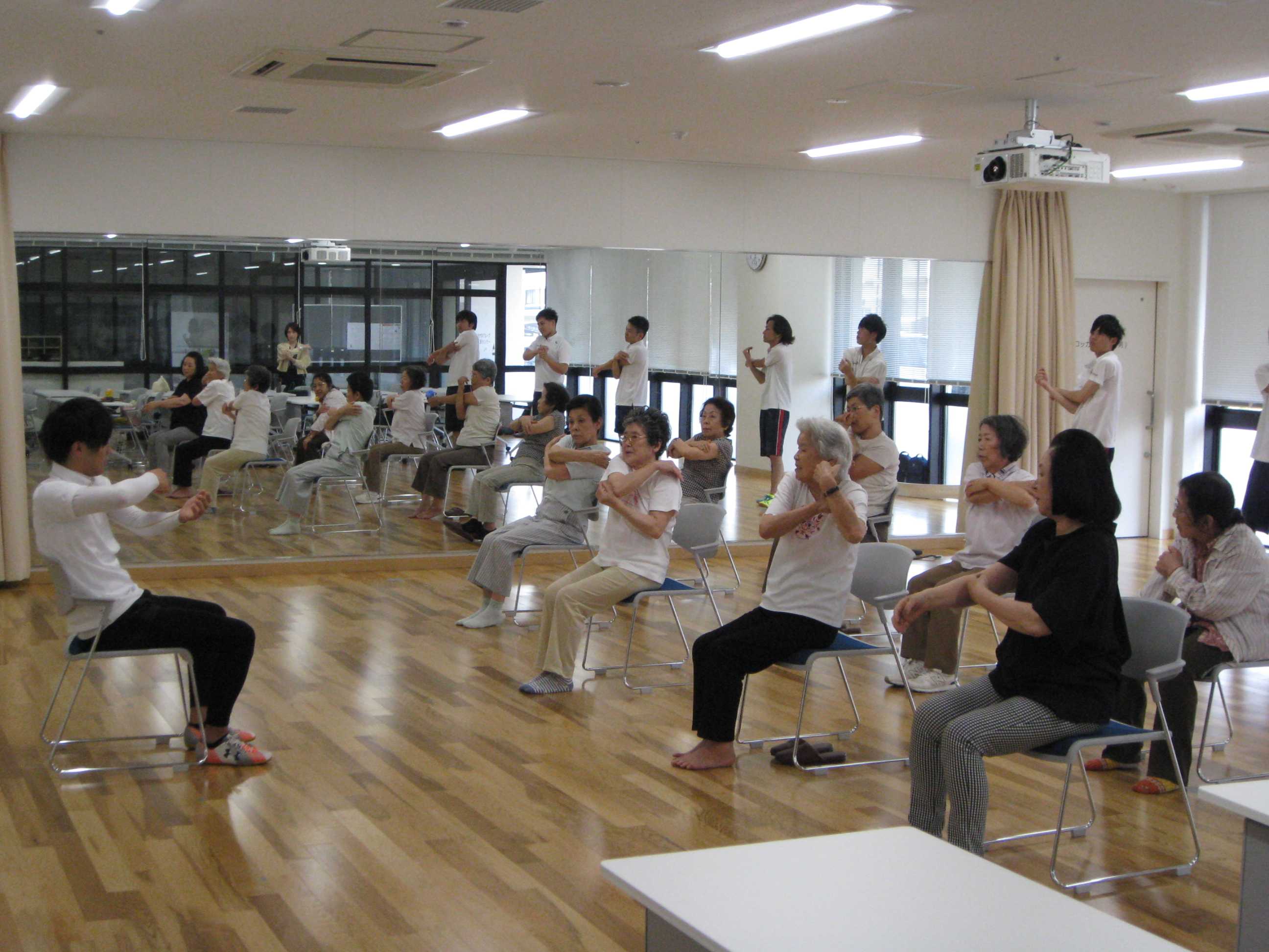 「地域スポーツ実践演習」の授業の取り組みとして、西九州大学グループ健康支援センターにおいて「すこやか元気力アップ講座」を本年度は8回開催します。6月2日(土)に第1回目を開催し、「健康ウォーキング」の講話(近藤先生担当)の後に、近藤ゼミの3年生6名がストレッチ体操やボッチャなどの楽しいレクリエーションを行いました。