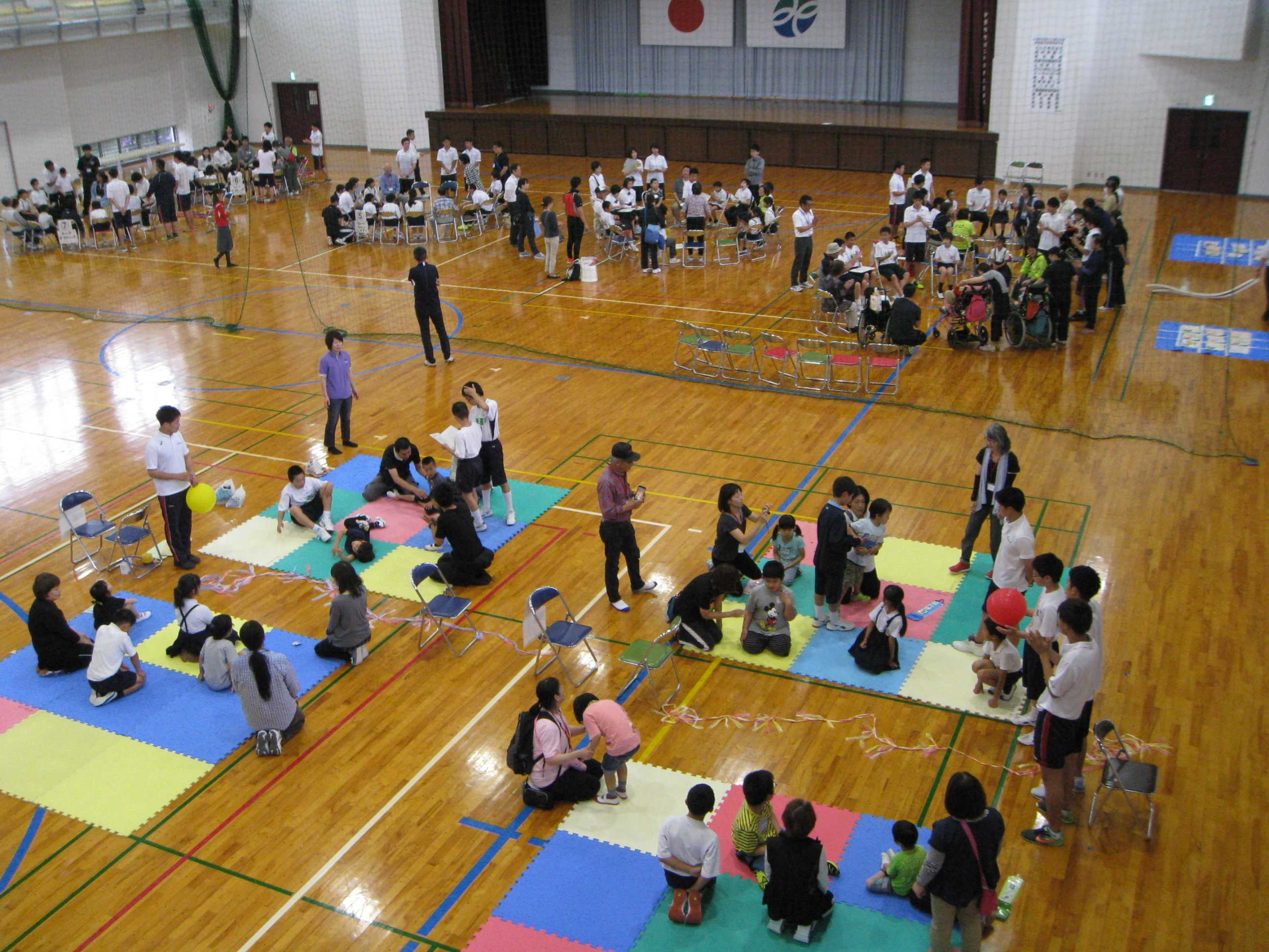 6月5日(火)にみやき町中原体育館にて、中原小・中・特別支援学校の児童、生徒と老人クラブなどの地域の方々(約200名)と一緒に、風船バレーやキャッチ・ザ・スティックなどのふれあい活動(ゲーム)を行いました。本学科では地域スポーツ実践演習の取り組みとして、毎年参加しています。たくさんの歓声があがり、楽しい時間を共有できました。