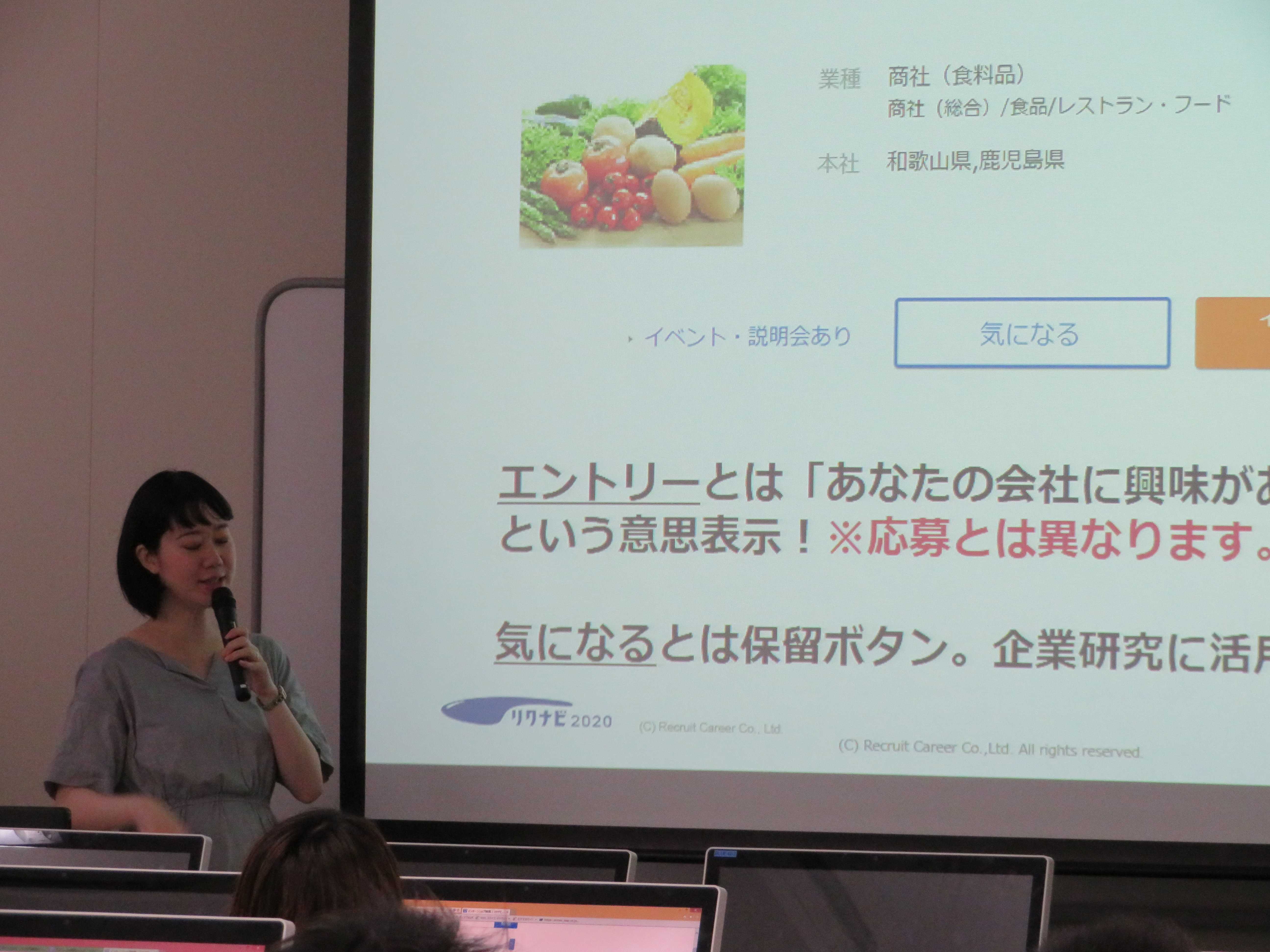 本日の講座では『インターンシップの手順』『参加者として必要なマナー』『就職活動に必要な自己分析』など、分かりやすく説明していただき、学生も早速インターンシップの登録を行っていました