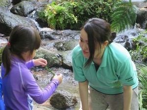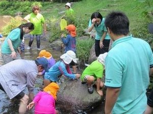当日は、2~6歳の園児と川に入ってメダカやトンボを捕まえたうえで、生き物にとっての水や岩の役割、環境保全の必要性について、園児が園長先生との対話を通して学ぶ様子を見ました