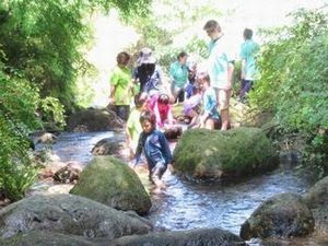 また、園児と沢登りを体験し、沢登りひとつにも、手や足でバランスをとる感覚、目標地点まで危険を回避し続ける注意集中力、困難に向き合う怖さとその克服心、達成感など、多くの心理が関与していることを学びました。子どもたちの心と触れ合う、学び多い一日でした