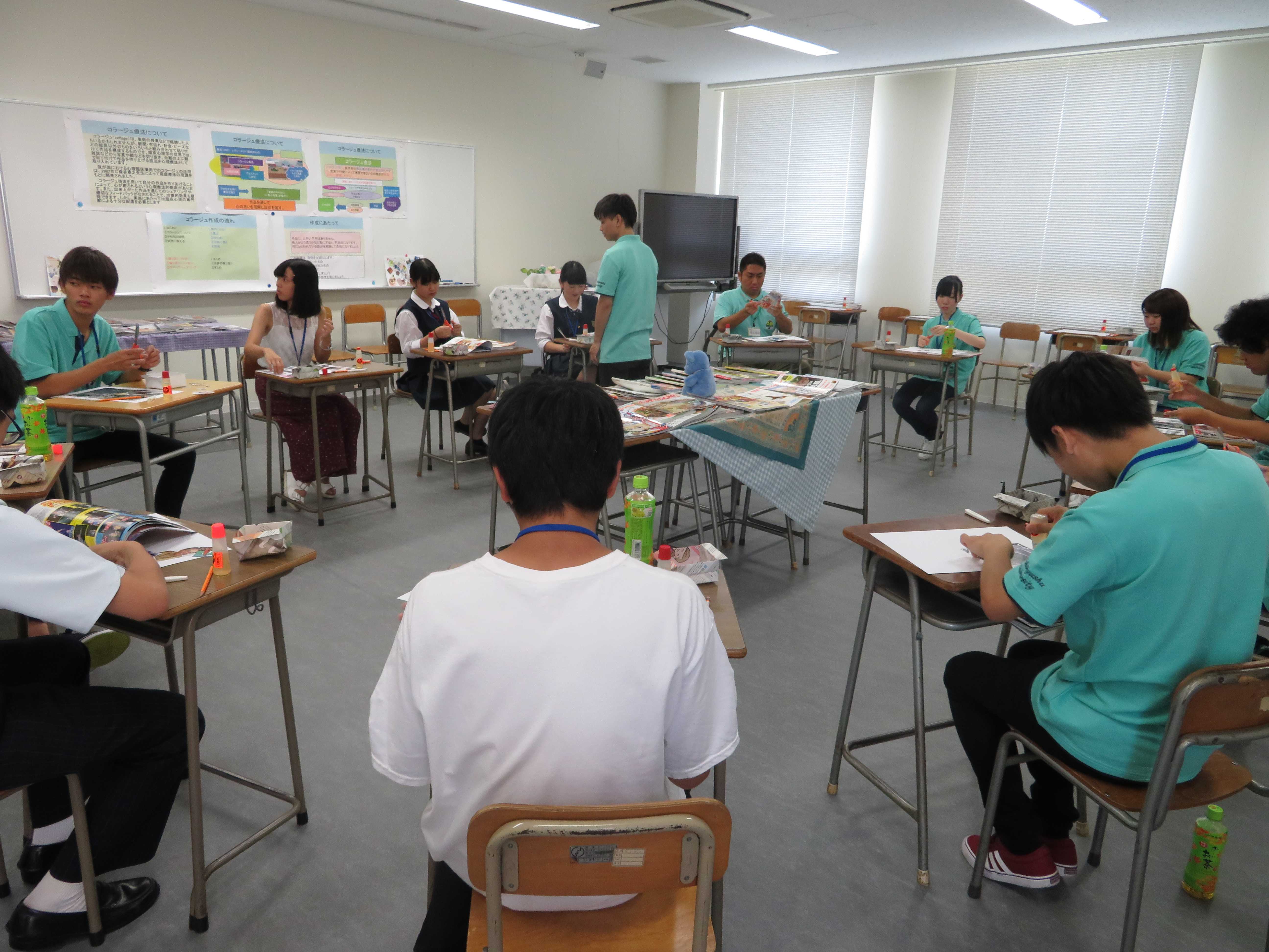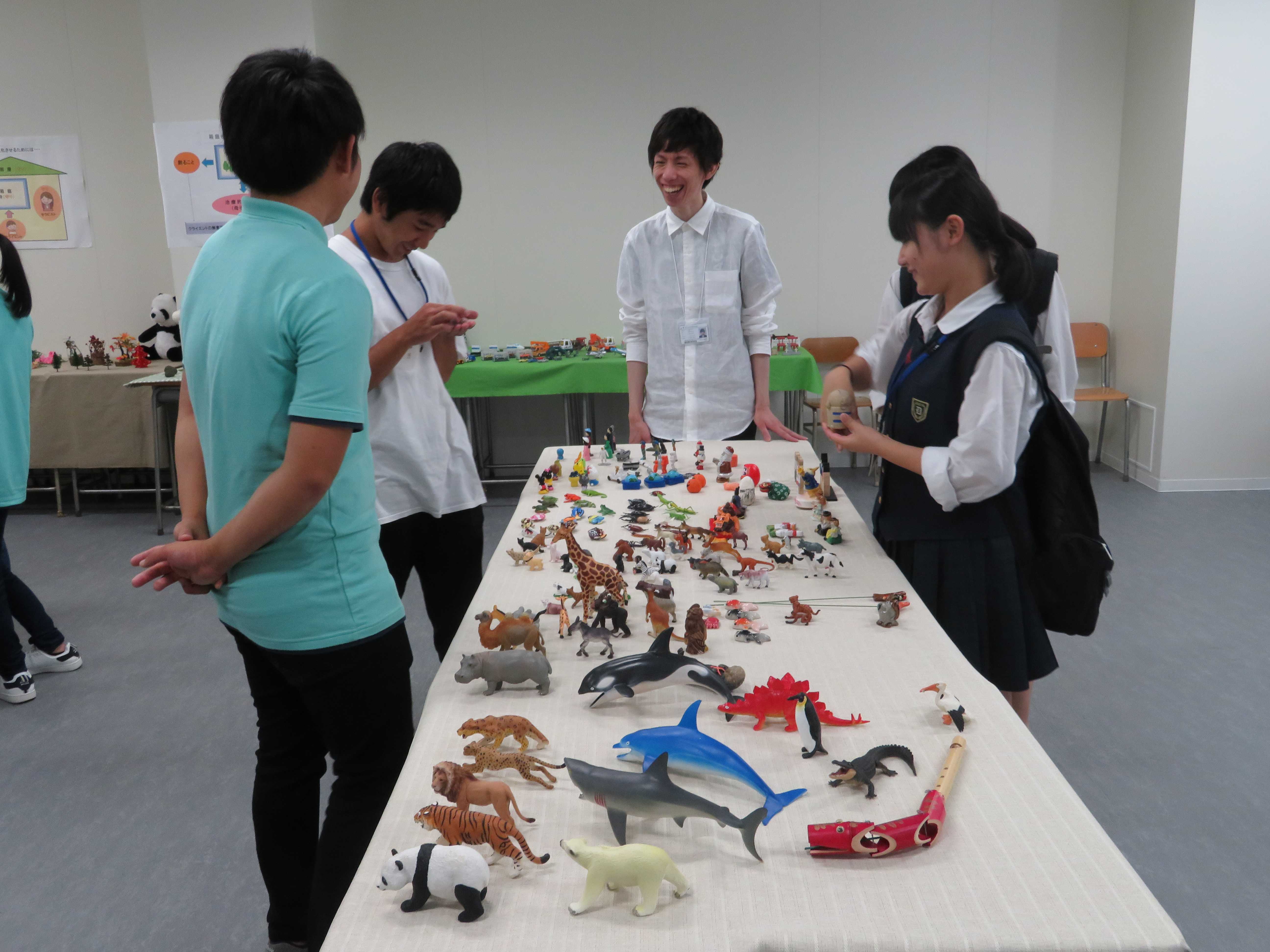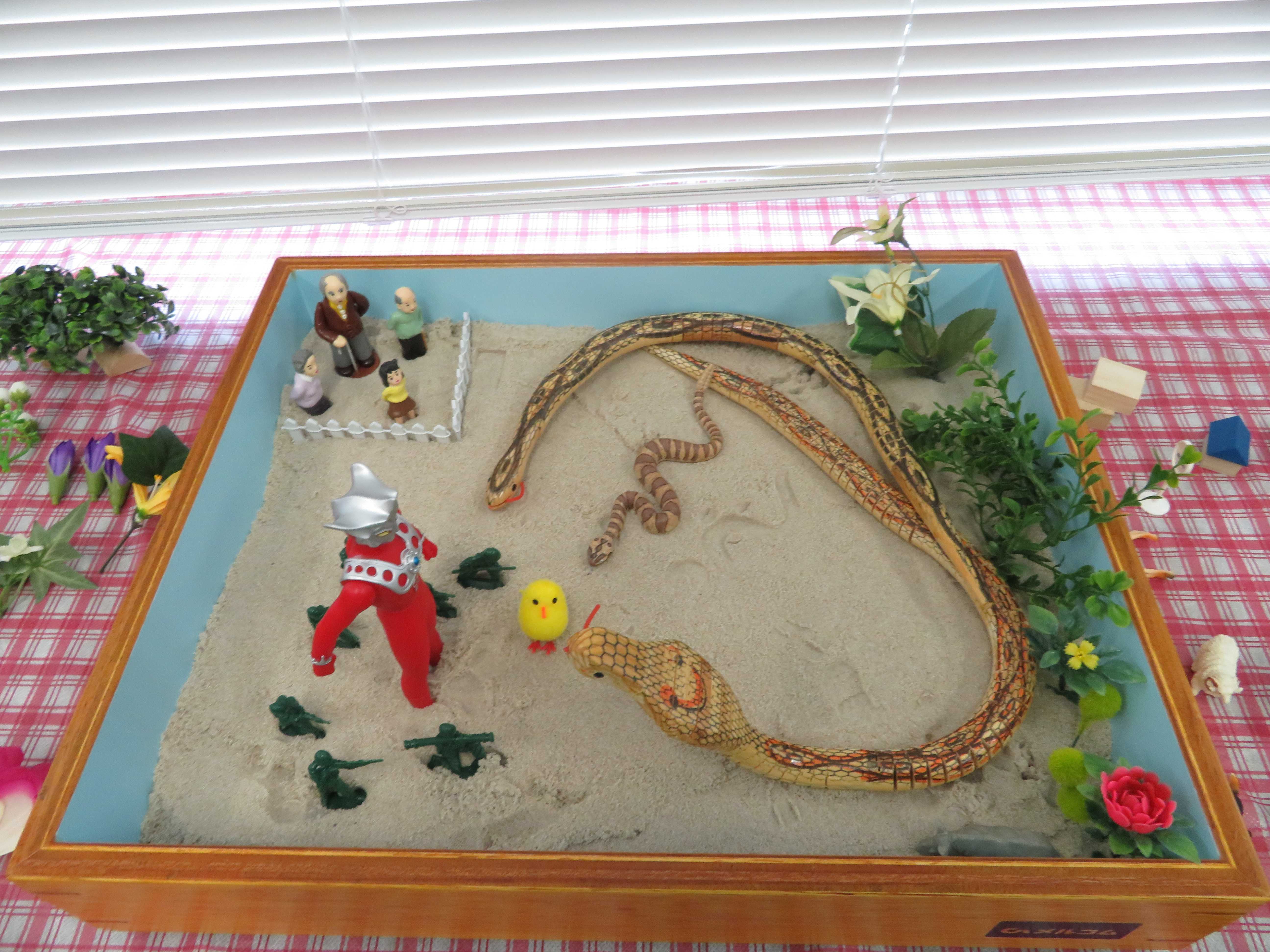 午後のプログラムはキャンパスツアーです。今回も箱庭療法とコラージュ療法の技法について体験していただきました。それぞれ多種多様な作品ができました