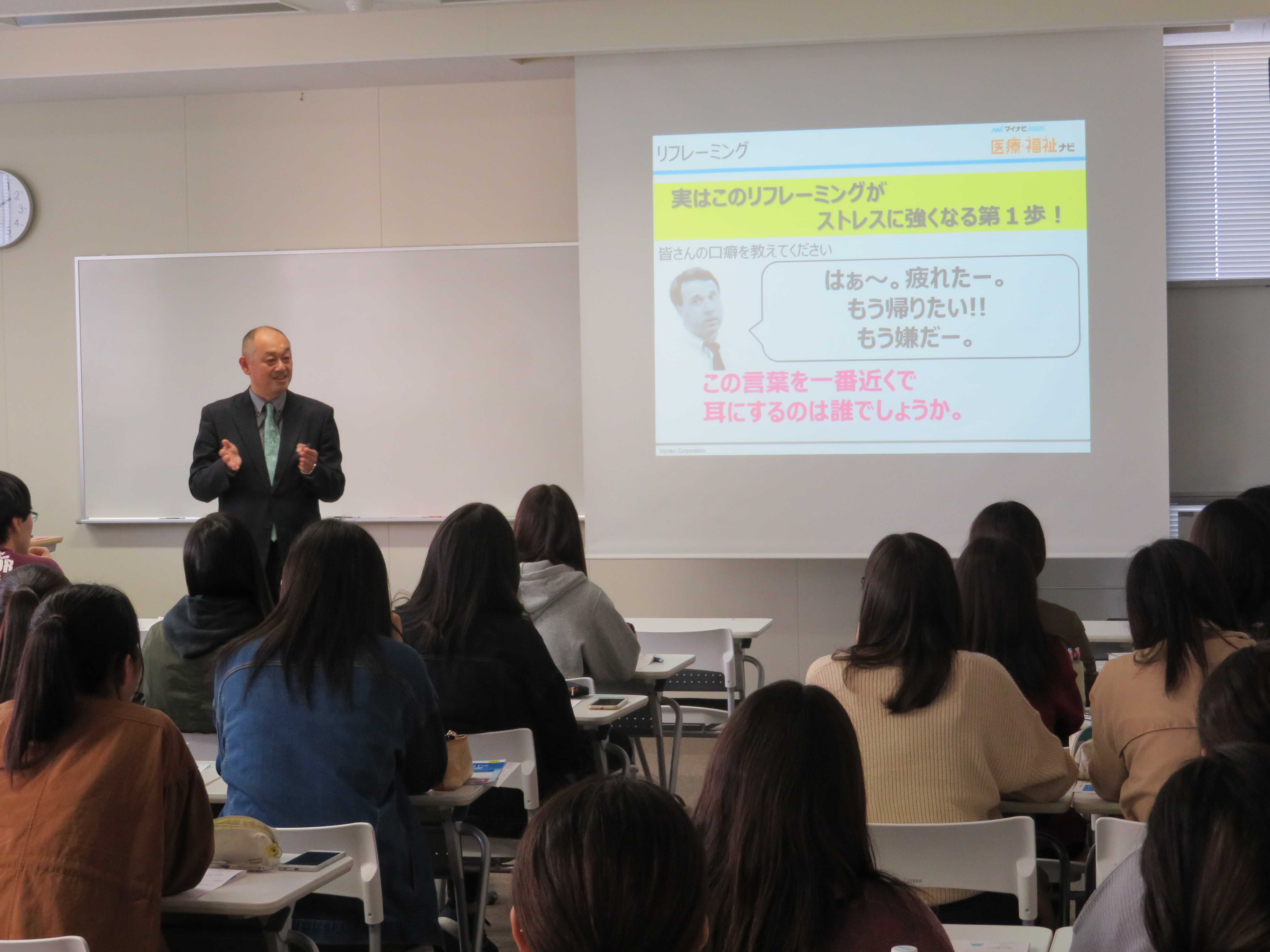 11月5日(月)のゼミナールⅠの授業において、「ストレス耐性を身につけるには」の講座を学生たちは受講しました。