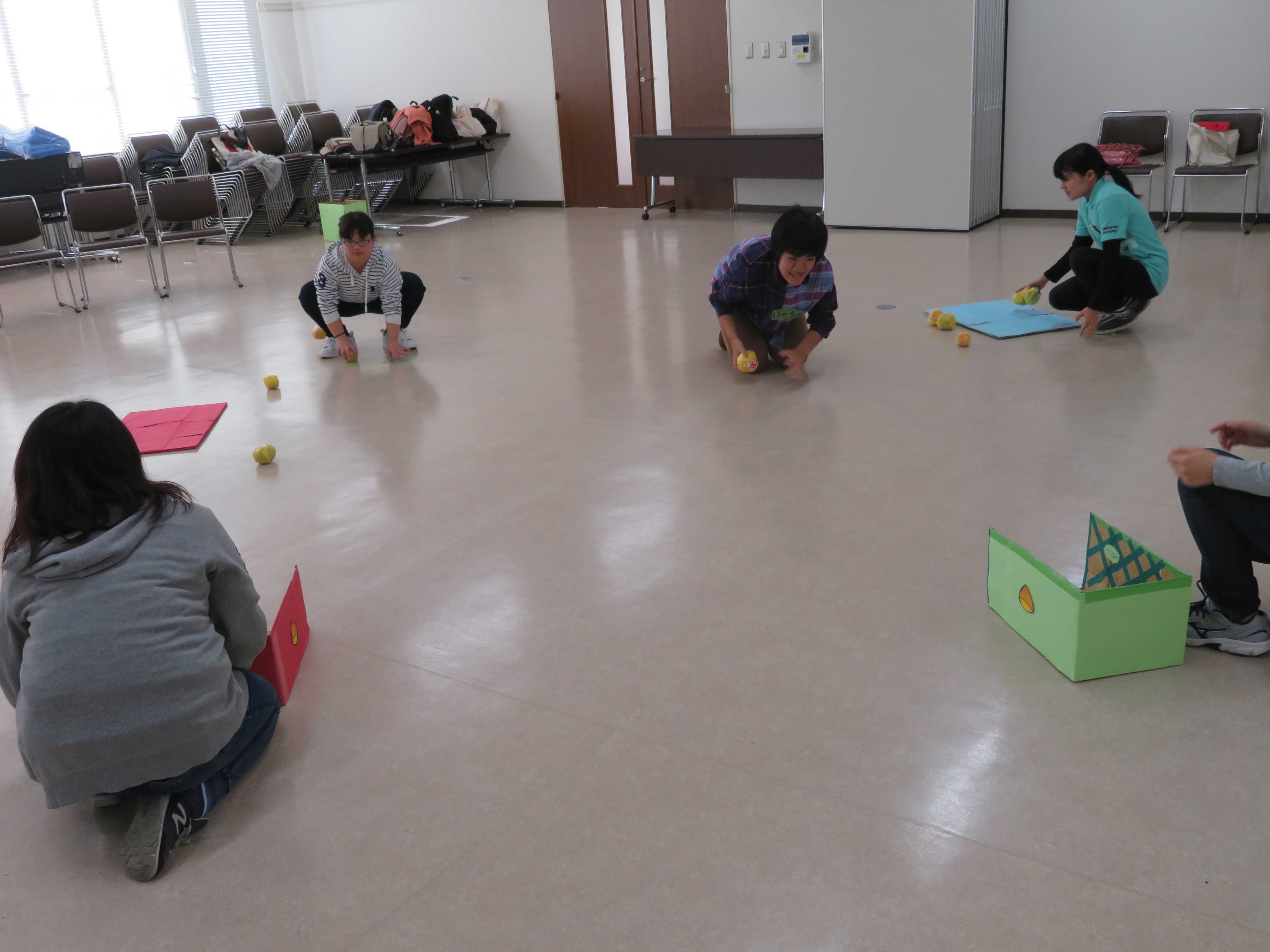 玉入れの様子。みなさん集中してゴールを狙います。満点をとった方もいて盛り上がりました