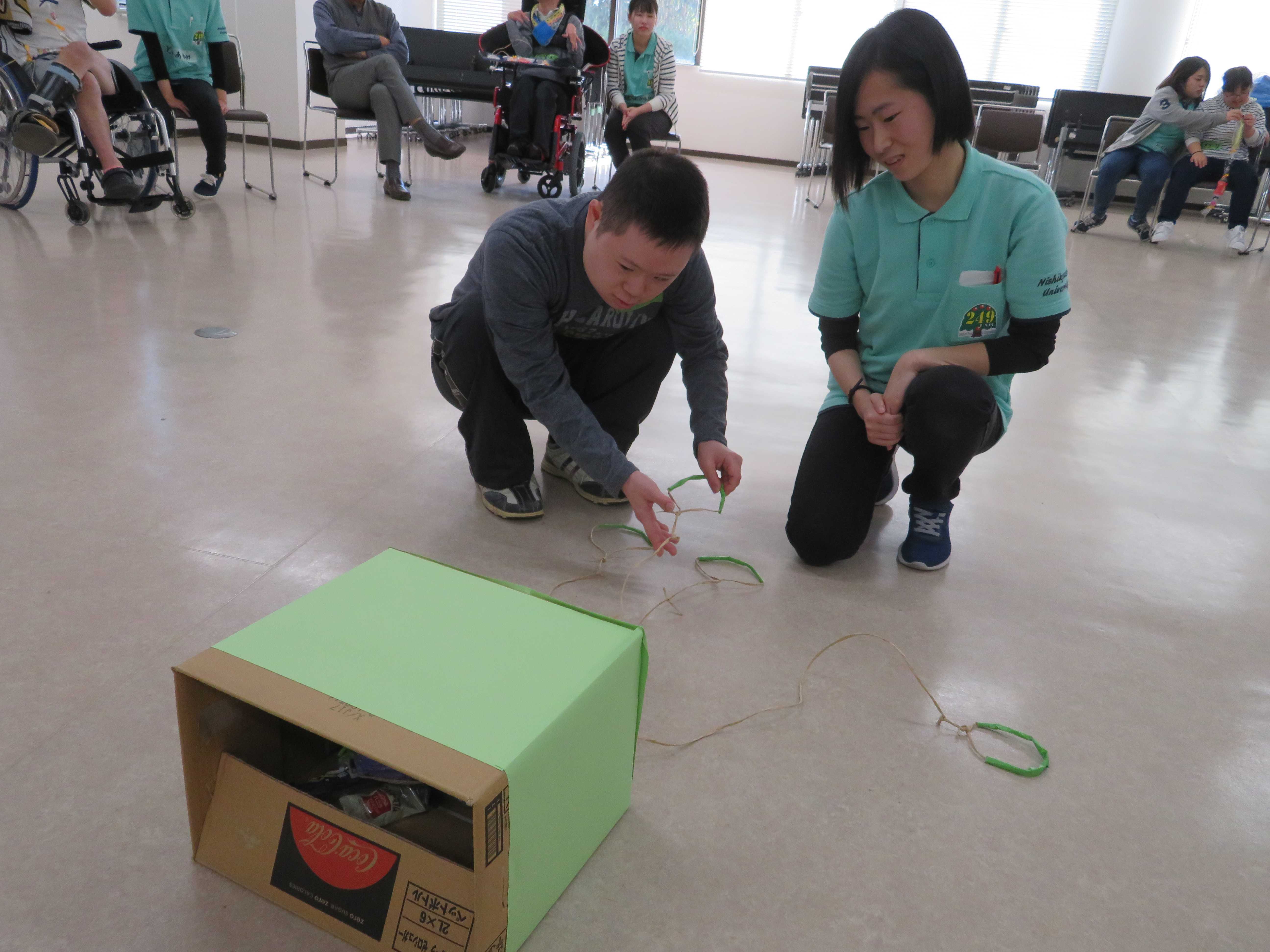 「あすなろう体験Ⅲ」という授業の一環で、障害のある方とその家族でつくる「かえでの会」と西九州大学の学生たちの交流会を、年4回開催しています