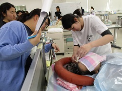 - 【看護学科】講義の1コマ ☆洗髪の演習☆