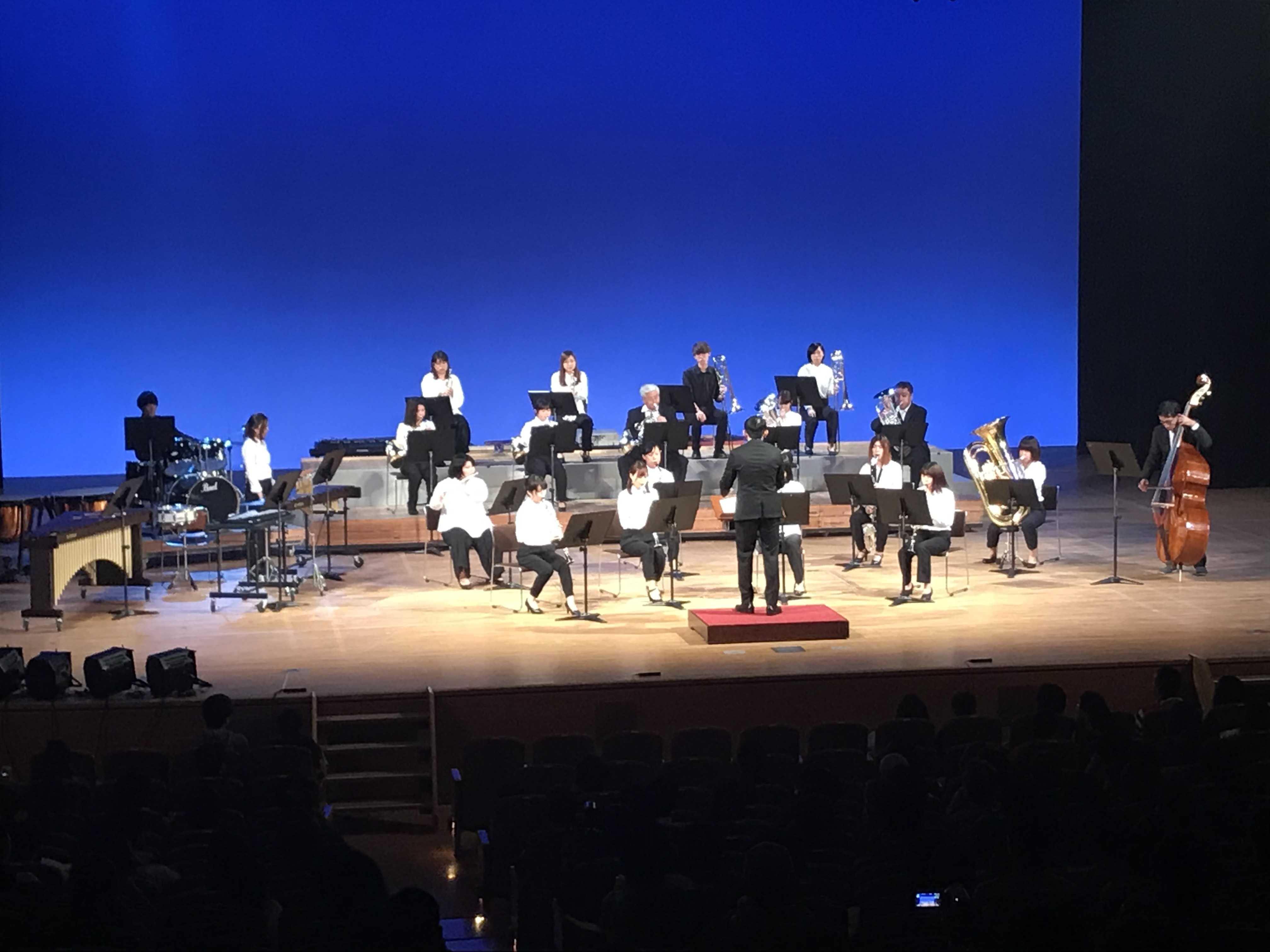 吹奏楽団の演奏には、本学科の学生も1名参加しており、彼はパーカッションを担当していました