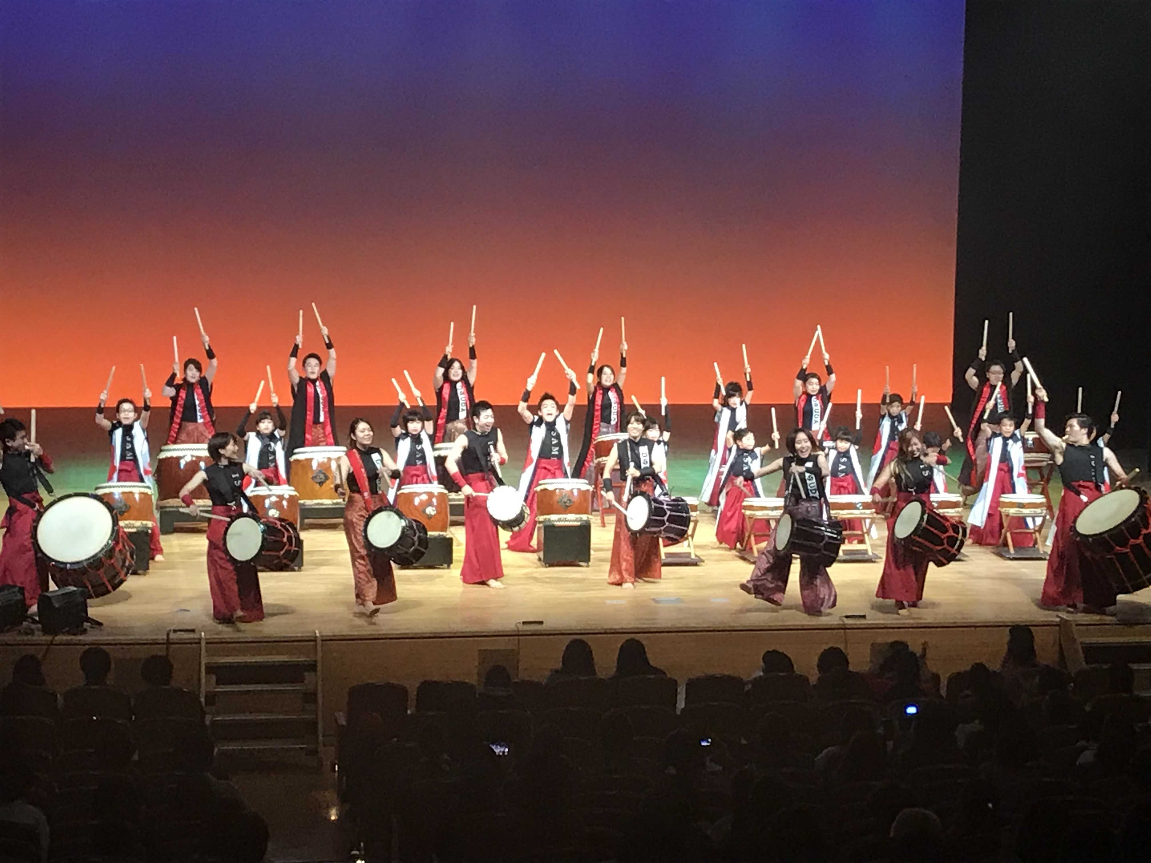 今回は、筑後市の天拝勇太鼓の皆さんとコラボレーションをして、演奏していました。天排勇太鼓は、小学生から社会人まで所属しており、子どもたちの演奏も勇ましく立派なものでした