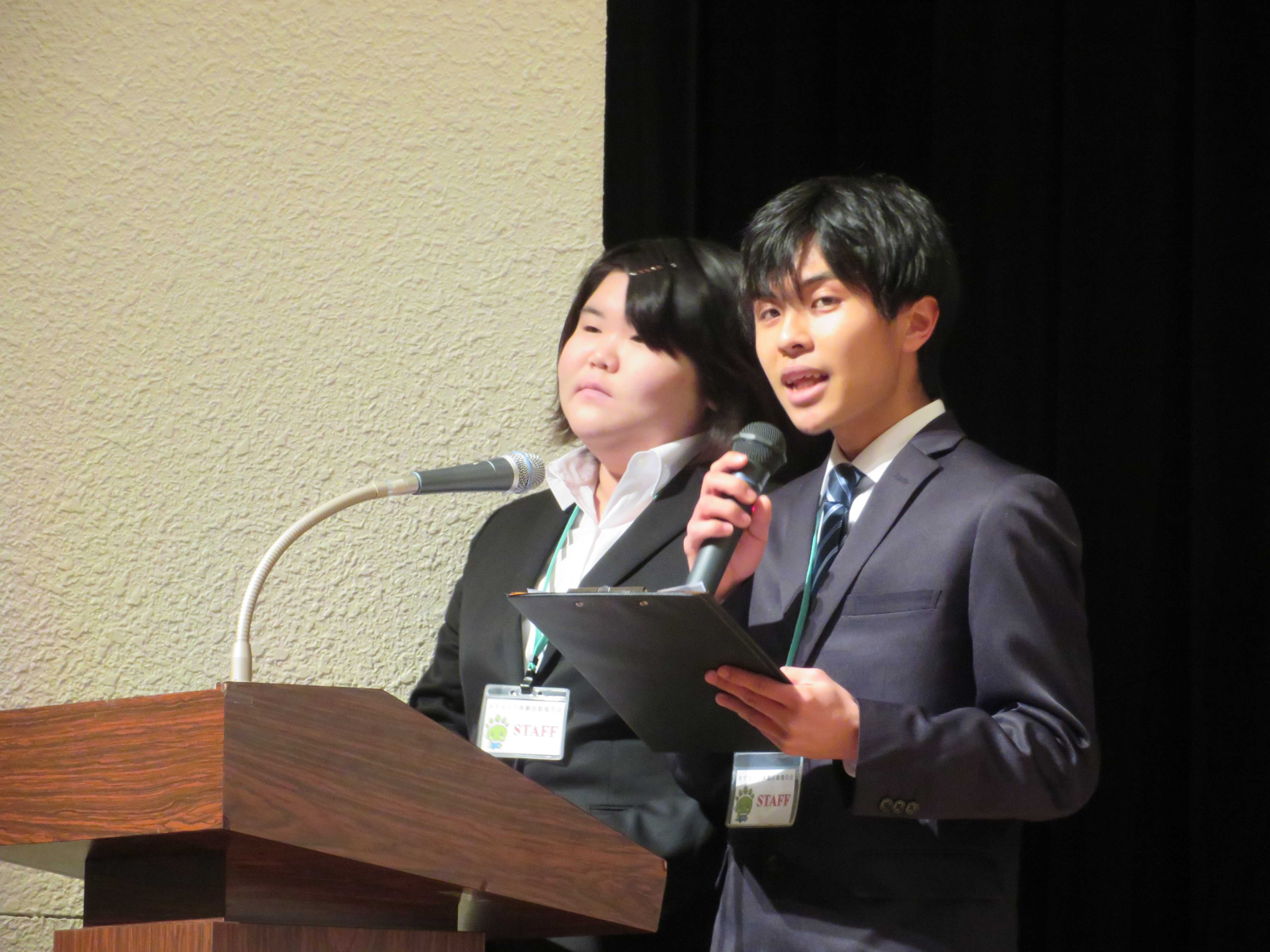 また、体験活動報告会の司会も1年生の男子学生が担当していました