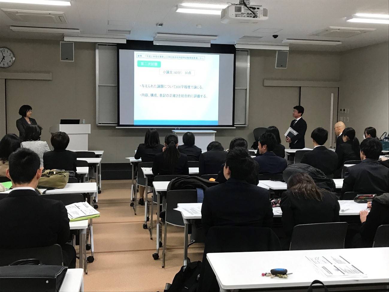 12月13日(木)に神埼キャンパスにおいて、佐賀県教育委員会から教員採用試験担当者をお招きし、教員採用試験説明会を開催しました。スポーツ健康福祉学科からは2年生も含む23名が参加し、教員採用を夢見て、真剣に取り組もうとする意欲が感じられました。