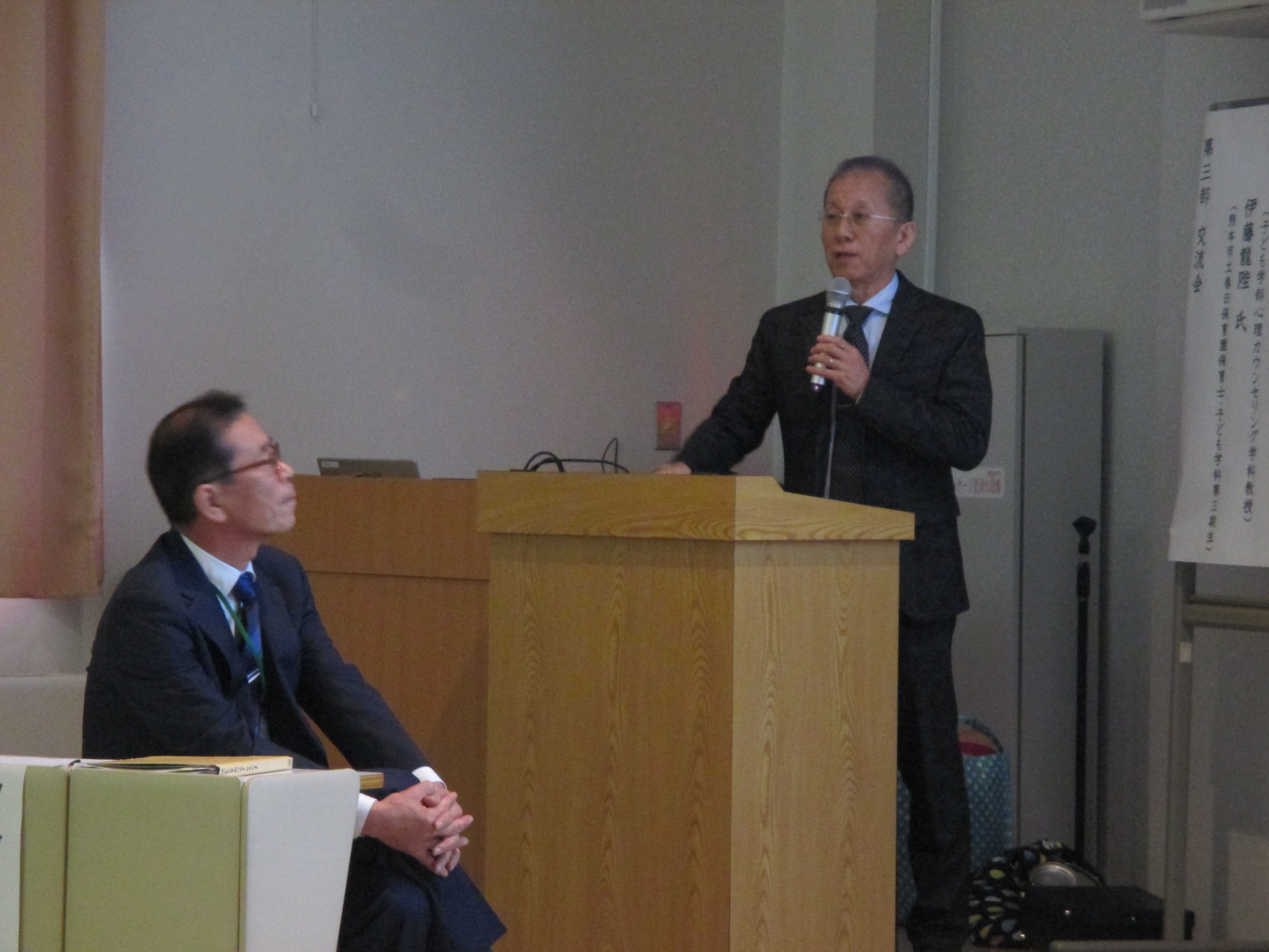 続いて、シンポジウムです。本学科の西村学科長が登壇しました。シンポジウムは「子どもと表現」というテーマで行われ、西村学科長は芸術療法の観点からお話ししました。