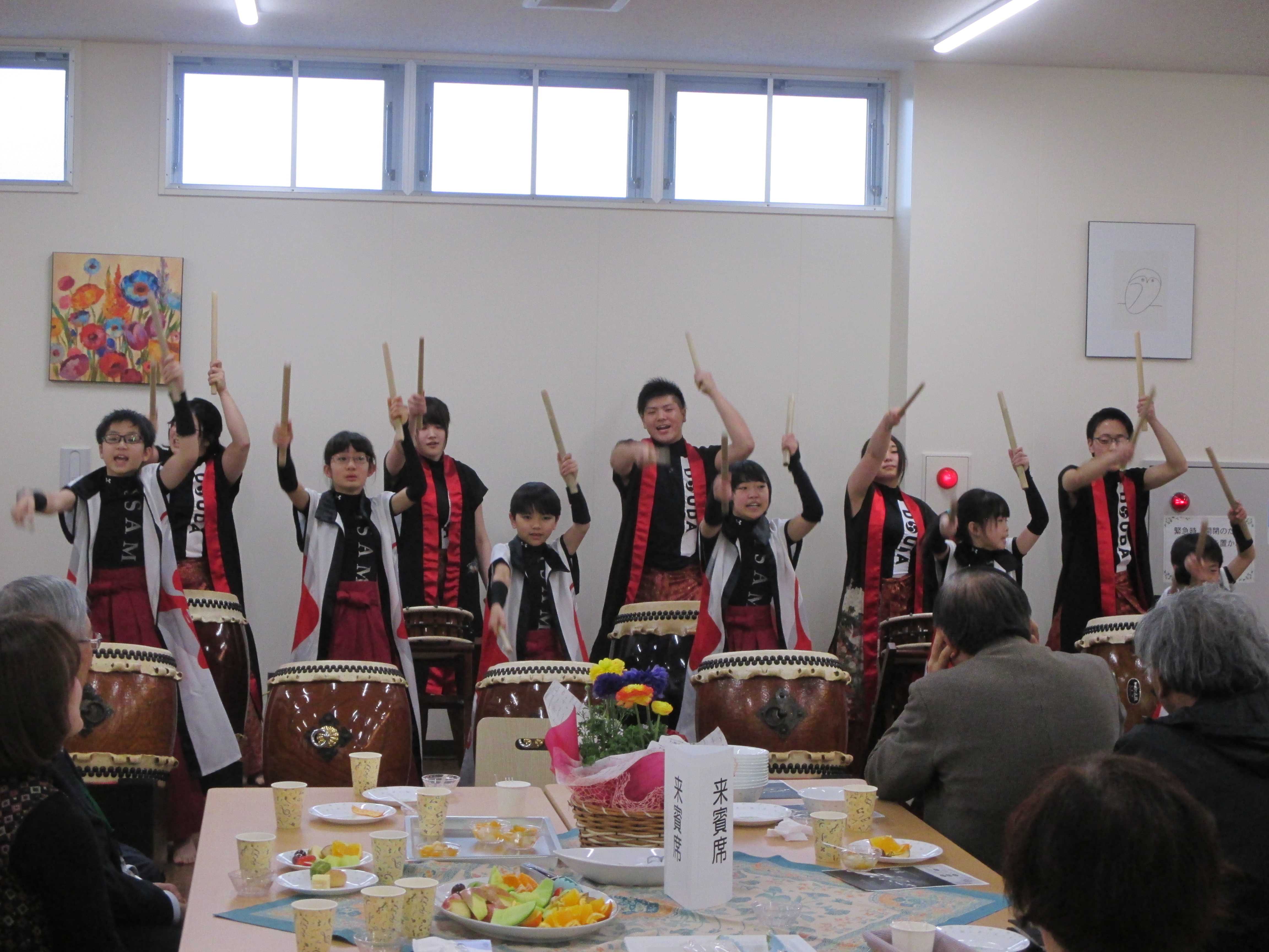 第3部は、長野教授による乾杯の音頭から交流会がはじまりました。卒業生、来賓の方々、ズッカーマンさん、教職員がそれぞれお茶を飲みながらの交流を深めました。余興の堂打の演奏も迫力があってよかったです