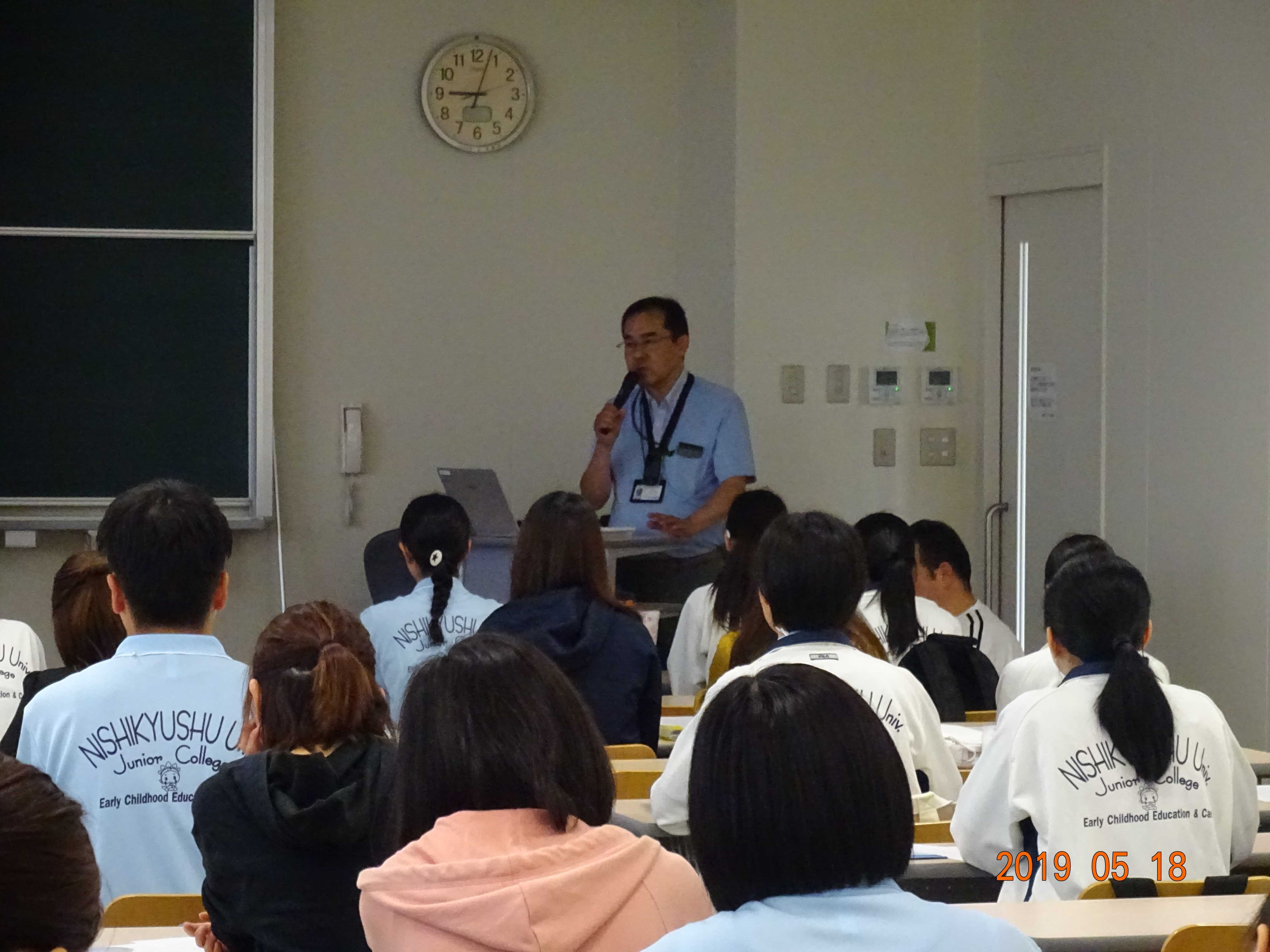 2019年5月18日(土)、西九州大学佐賀キャンパスにて、「子どもの支援Ⅰ(基礎・実習)」の「前半基礎ユニット」が西九州大学子ども学部、西九州大学短期大学部幼児保育科合同で開催され、61名の学生が参加しました