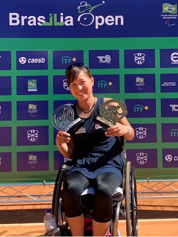 スポーツ健康福祉学科4年生の大谷桃子さんが、7月にアメリカやブラジルで開催された車いすテニスのツアー大会に出場しました。 Brasilia Open(7月4日~7日)でのシングルス部門優勝に加え、ダブルス部門でも準優勝に輝いたほか、2019 Midwest Wheelchair Championships(7月11日~14日)ではシングルス部門優勝という好成績を残して帰国しました。