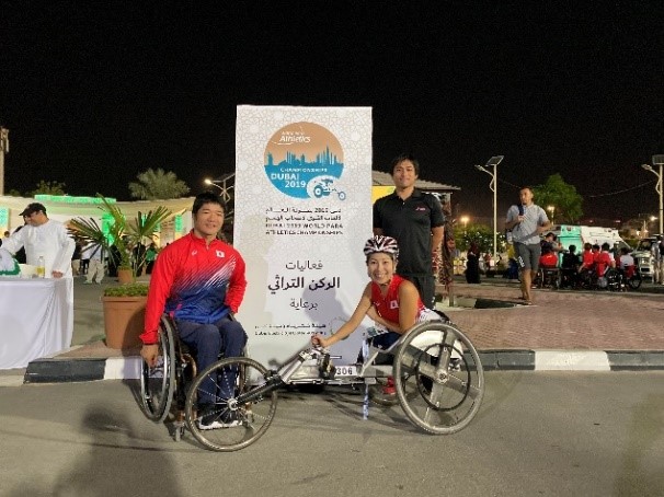 11月7日(木)から15(金)にUAE(アラブ首長国連邦)で開催された「ドバイ2019世界パラ陸上競技選手権大会」に、スポーツ健康福祉学科の甲木秀典講師が日本代表選手のコーチとして参加しました。 今大会は来年の東京パラリンピック出場枠の獲得がかかる重要な大会でした。 大会期間中は選手の身体的・心理的コンディショニングやレース分析などを行い、メダル獲得に貢献しました。