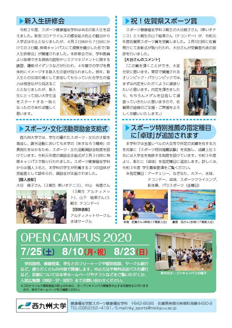 スポーツ健康福祉学科の広報誌『スポ健だより』第13号を発行しました。 今号からWeb上でも公開することになりましたので、ぜひご覧ください。 今後はバックナンバーも随時公開させていただく予定です。 お楽しみに!