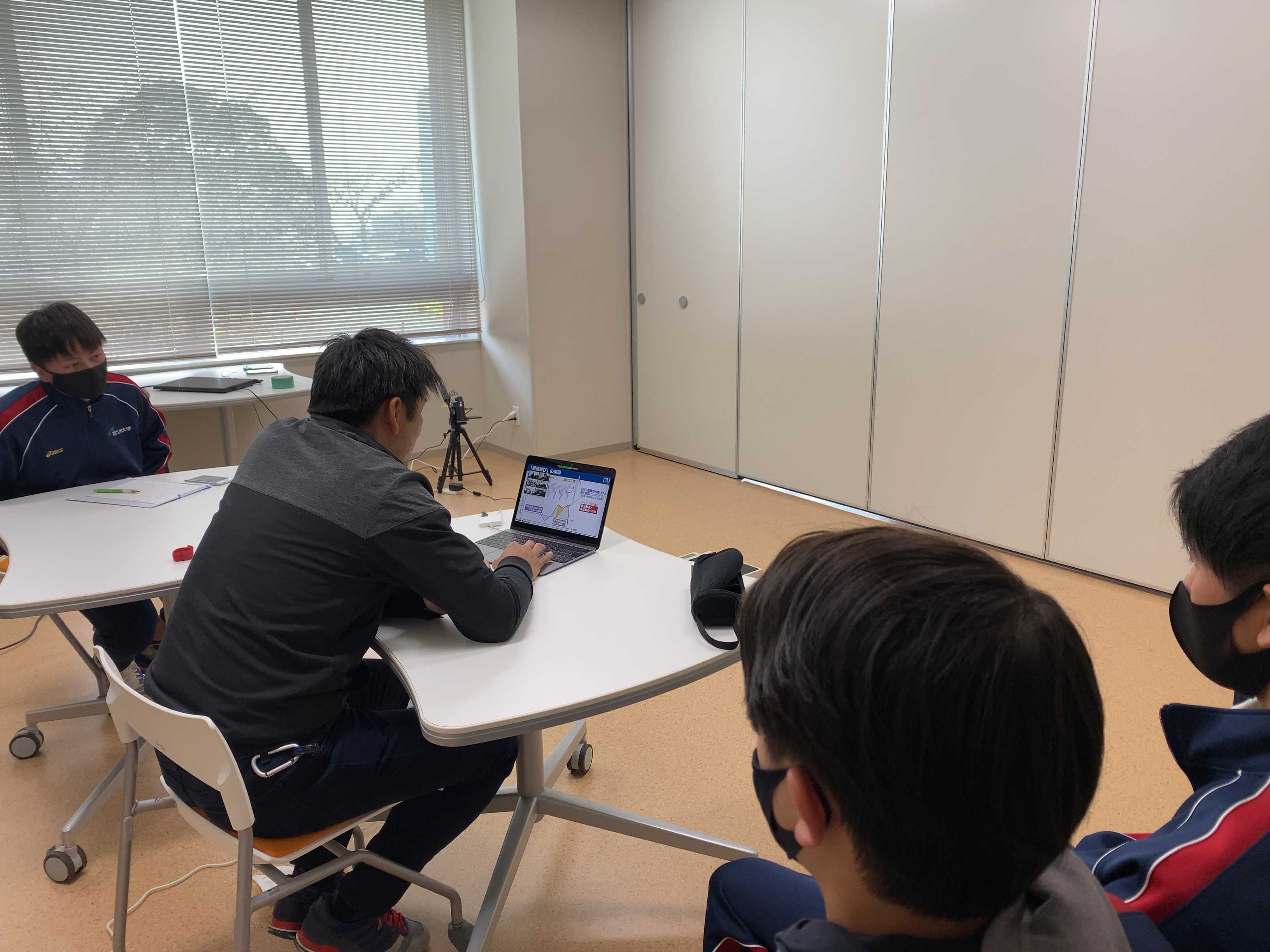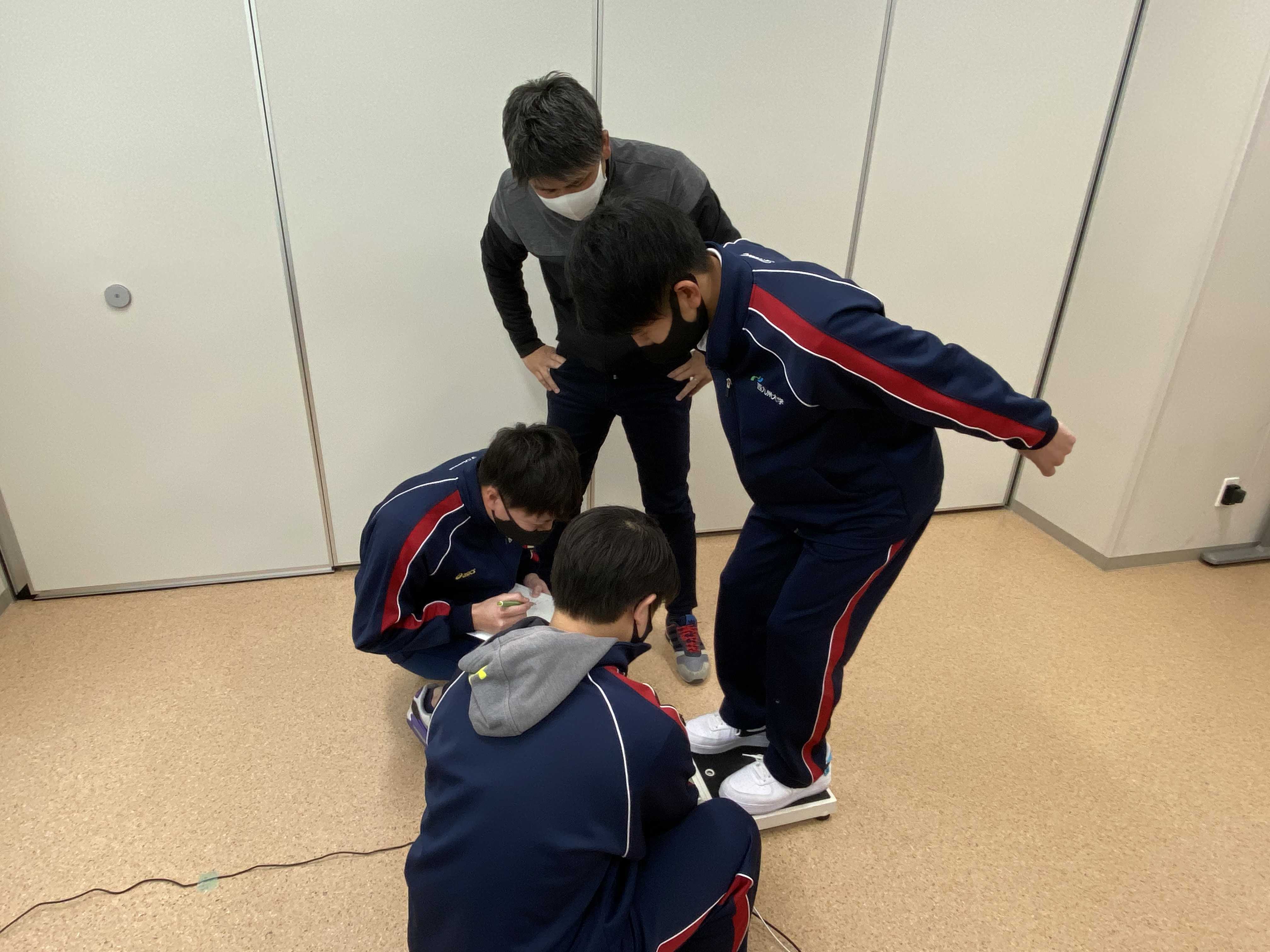 2月10日(水)に大分県内の私立高校1, 2年生を対象に、体育・スポーツ分野の進路ガイダンスをオンラインで実施しました。 スポーツ健康福祉学科の西田准教授による模擬授業『身近な道具でスポーツをはかる』では、ジャンプなどの運動で発生する力を計測する床反力計をアナログの体重計で手づくりするなどし、「大学でスポーツを学ぶこと」について体験してもらいました。