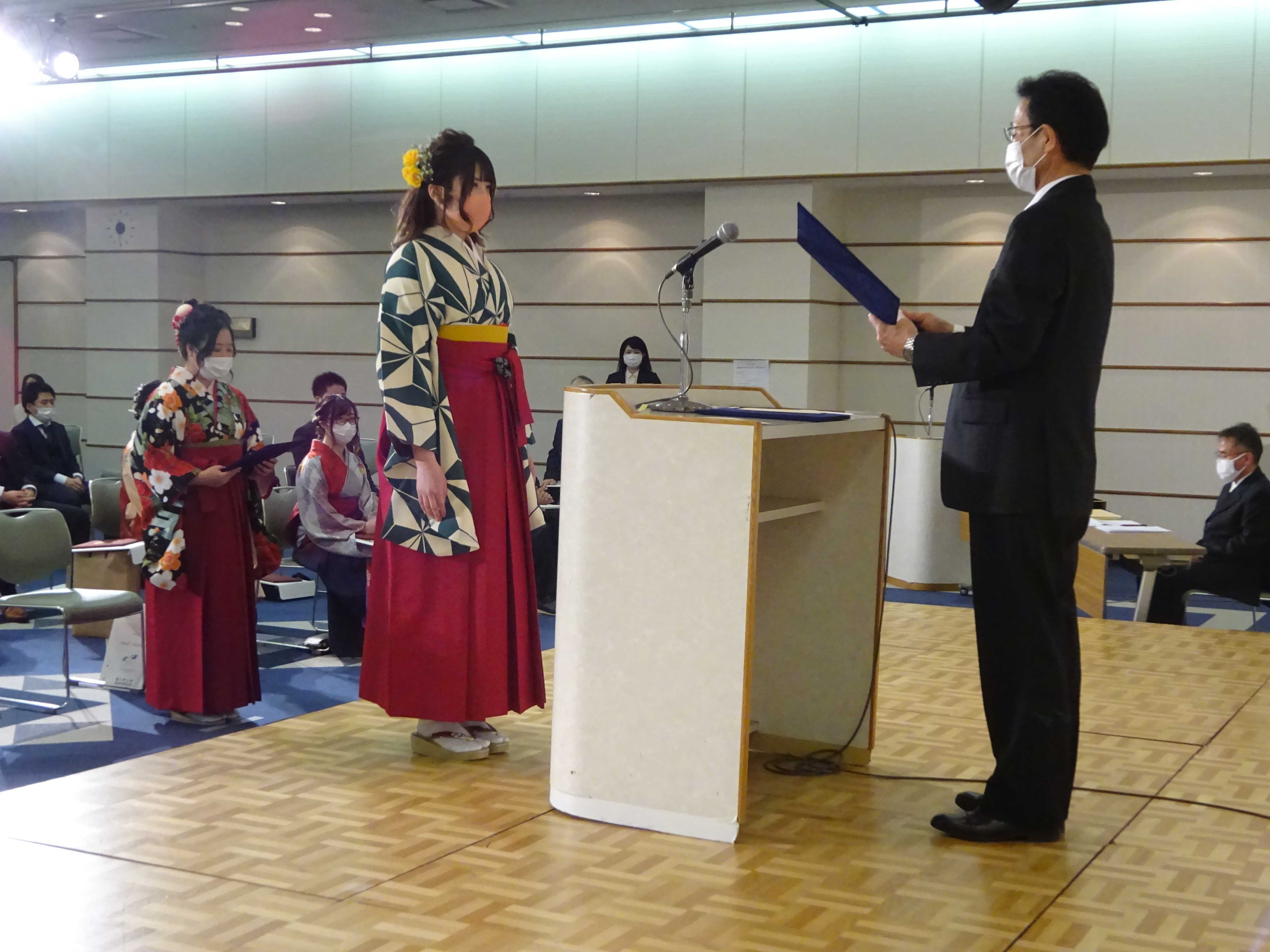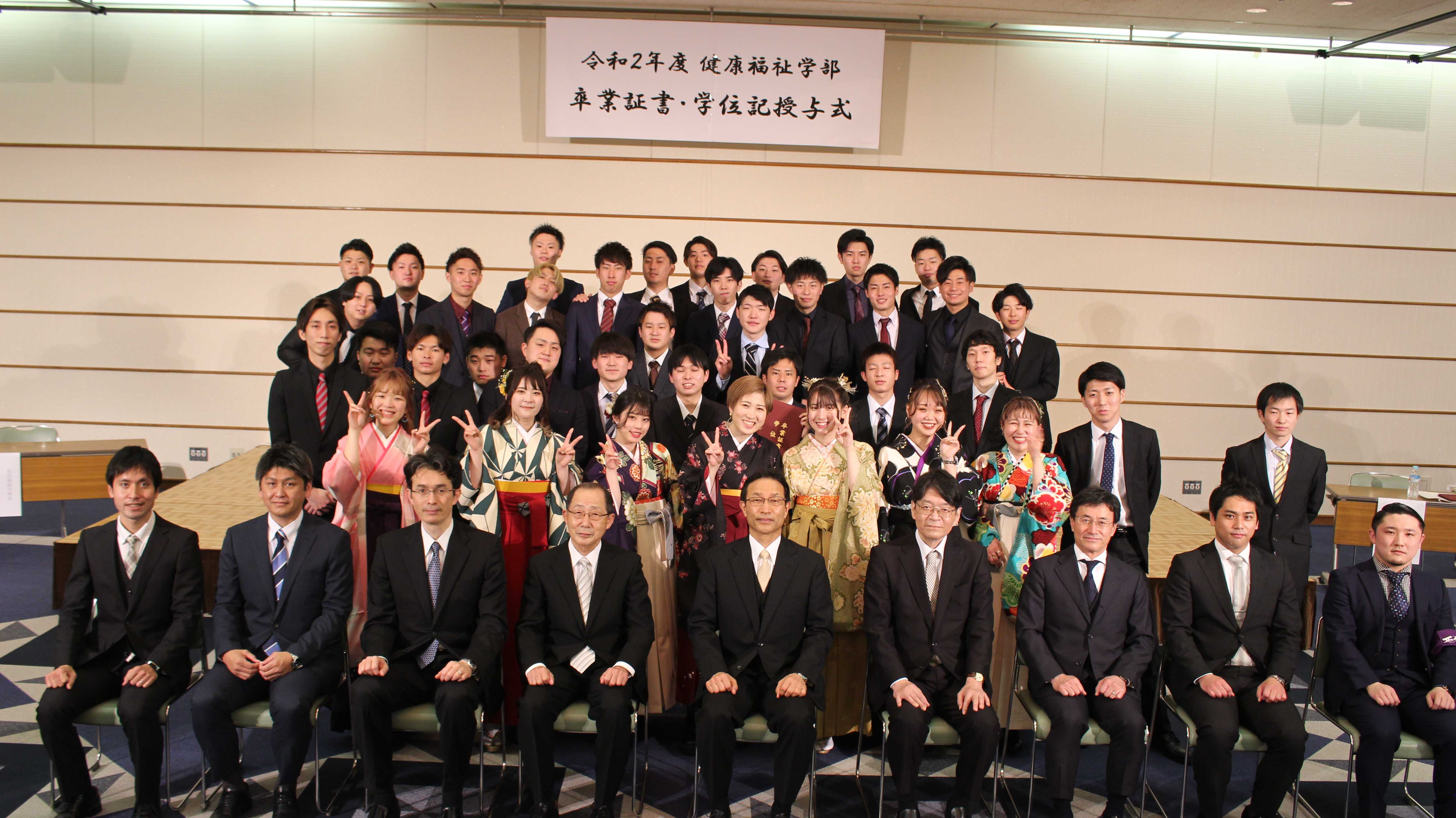 令和2年度卒業証書・学位記授与式が3月18日(木)に佐賀市文化会館で執り行われました。 入場者の制限や規模の縮小など必要な感染予防対策を講じた上での開催となりましたが、本学としては2年ぶりに卒業式の日を迎えることができました。 スポーツ健康福祉学科からは4期生の40名が卒業証書を手にし、お世話になった先生方や友人との別れを惜しみました。